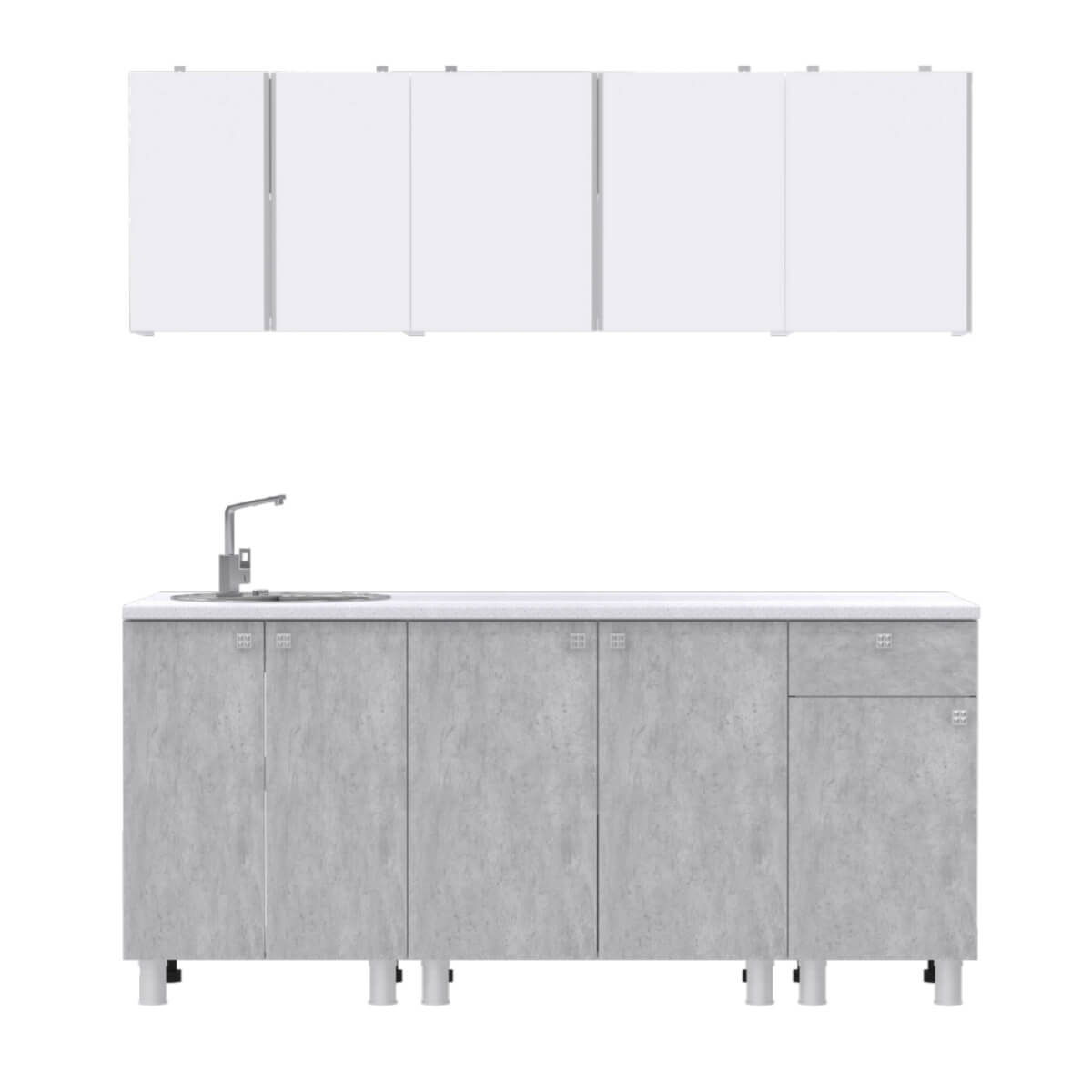 Кухня КГ-1 1800 Белый/Цемент светлый, материал корпуса - ЛДСП, габариты 1800x600x2000 мм.