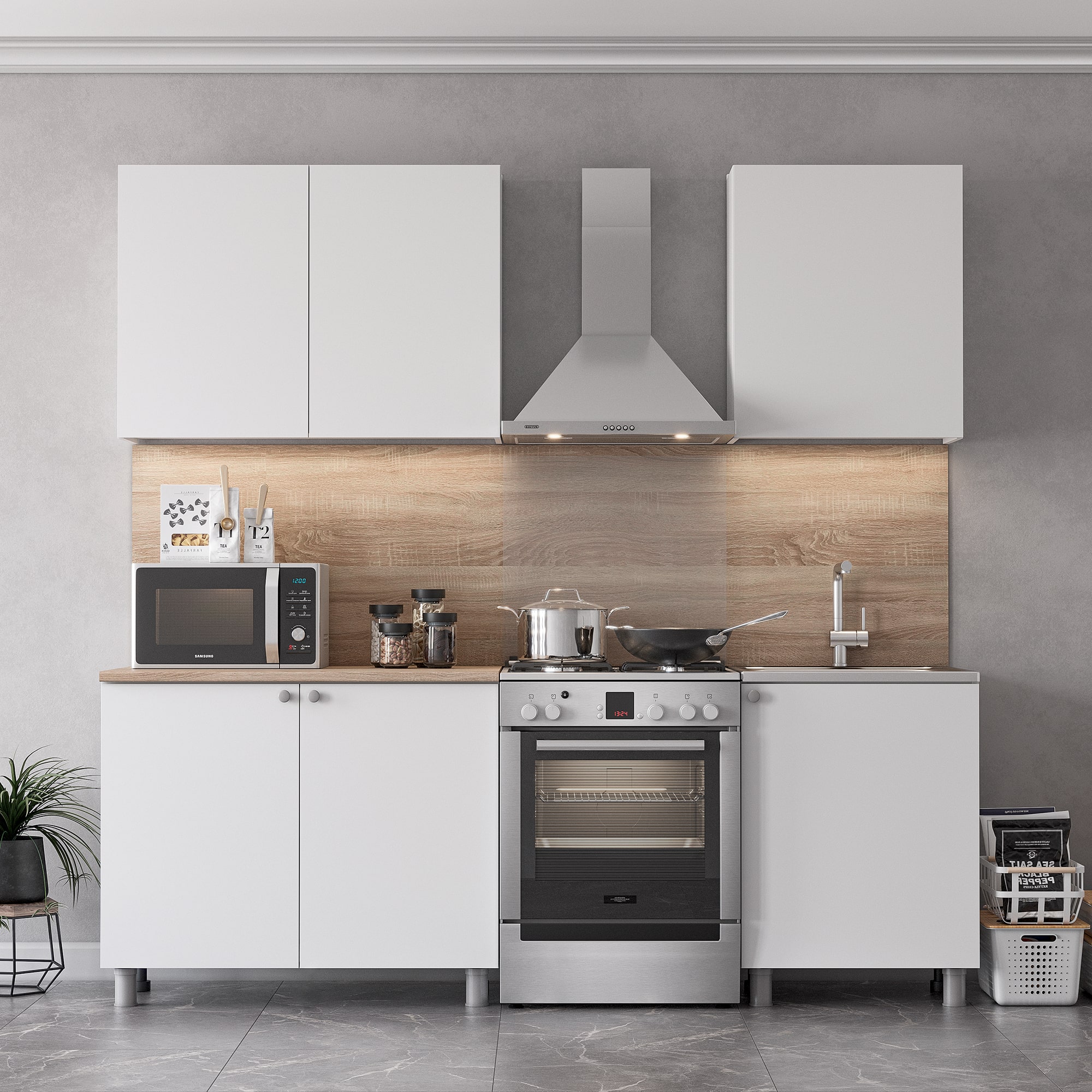 Кухня КГ- 6 1600 Белый, материал корпуса - ЛДСП, габариты 1600x600x2160 мм.