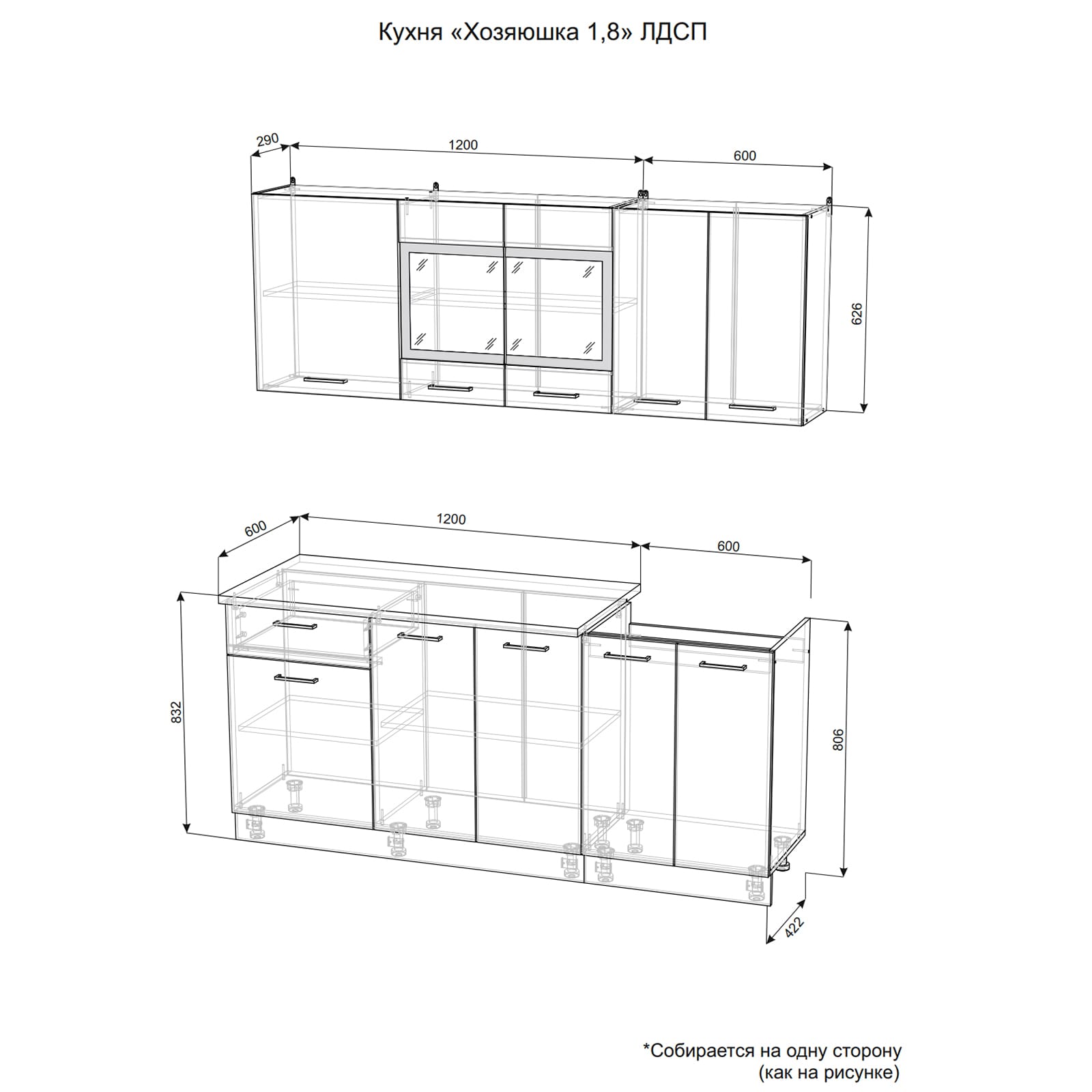 Кухня Хозяюшка 1,8 ЛДСП Дуб Вотан доступна к заказу в различных цветовых исполнениях, подходящих к любому интерьеру обеденной зоны.