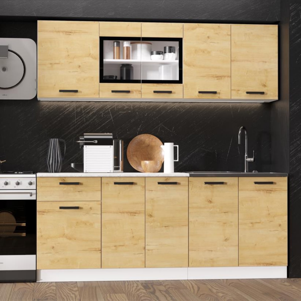 Кухня Хозяюшка 2,0 ЛДСП Дуб Вотан, материал корпуса - ЛДСП, габариты 2000x600x2100 мм.