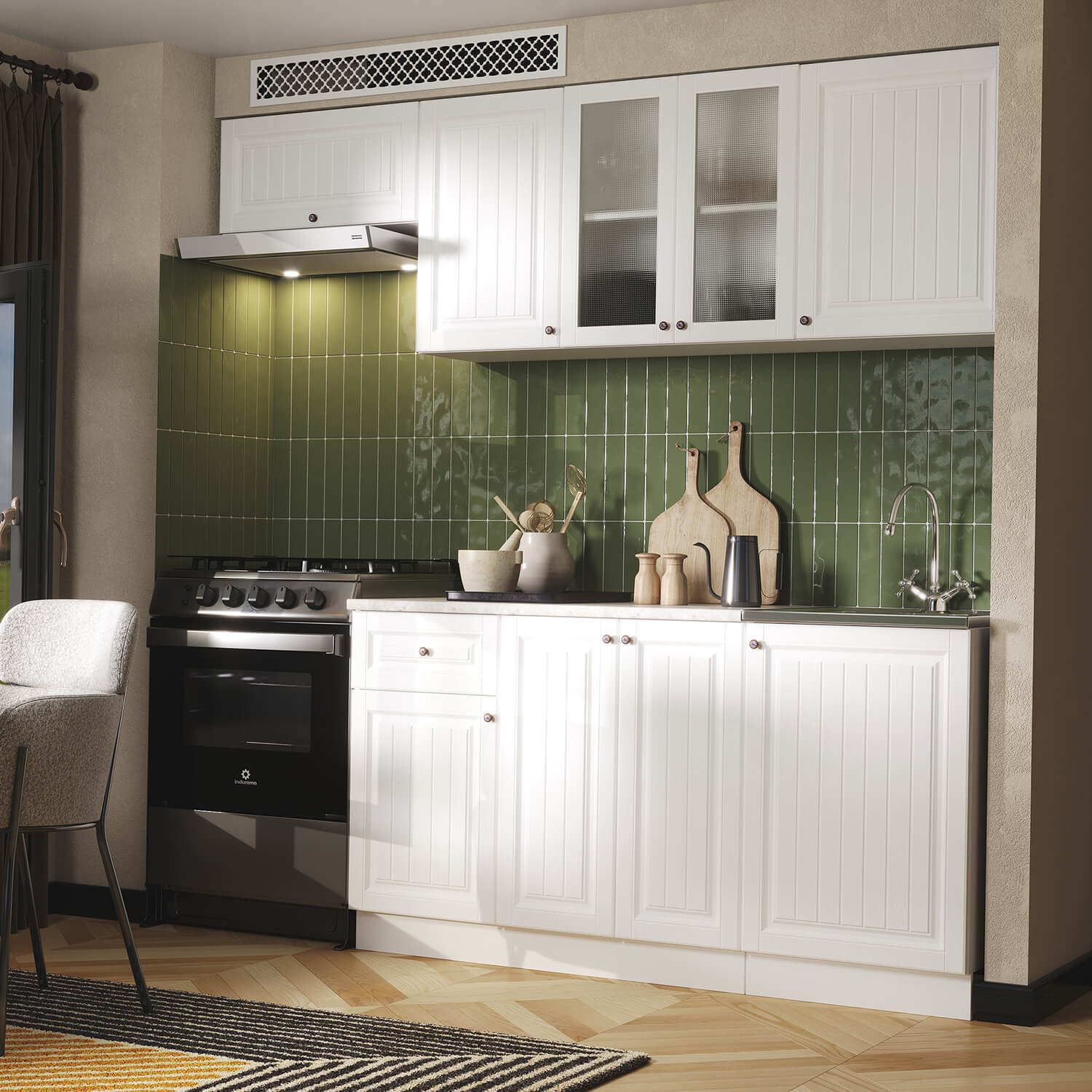 Кухня Хозяюшка 2,1 Акация Белая доступна к заказу в различных цветовых исполнениях, подходящих к любому интерьеру обеденной зоны.