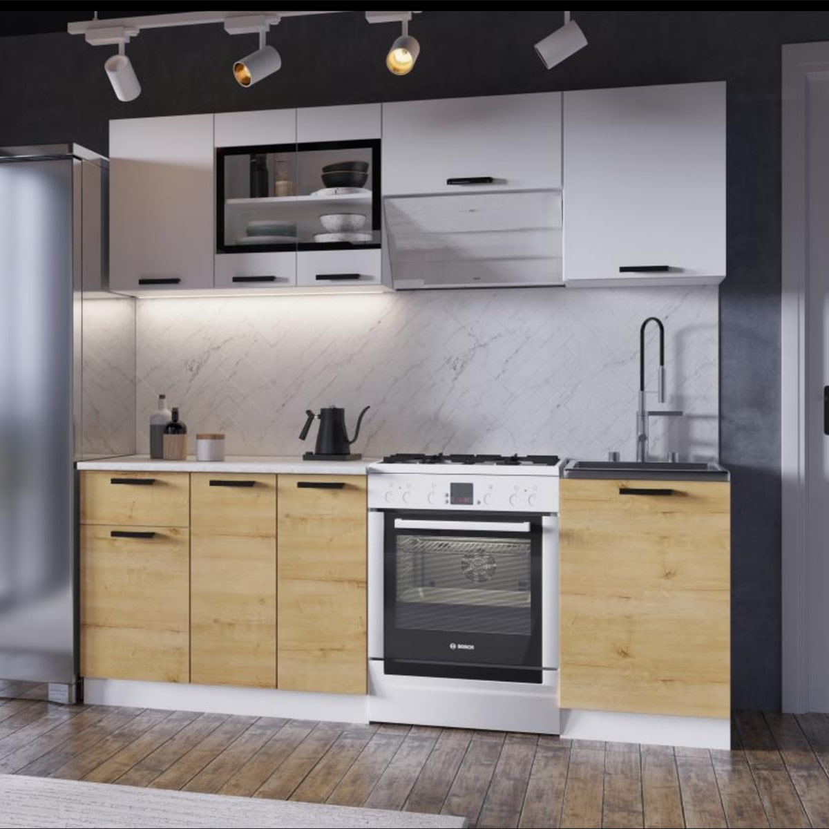 Кухня Хозяюшка 2,1 ЛДСП Белый гладкий/Дуб Вотан доступна к заказу в различных цветовых исполнениях, подходящих к любому интерьеру обеденной зоны.
