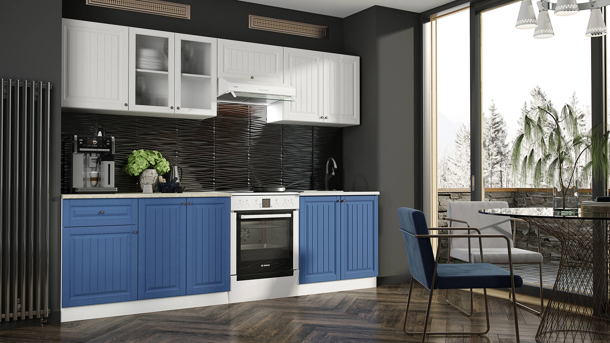 Кухня Хозяюшка 2,6 Акация Белая-Деним доступна к заказу в различных цветовых исполнениях, подходящих к любому интерьеру обеденной зоны.