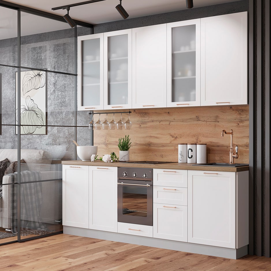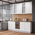 Отличный бюджетный вариант. В магазине предложили добавить доводчики, был хороший выбор фасадов, укомплектовали мойкой, сушилкой и прочим. Корпусы ЛДСПшные, серого цвета - это плюс. Необычная текстура у фасадов.