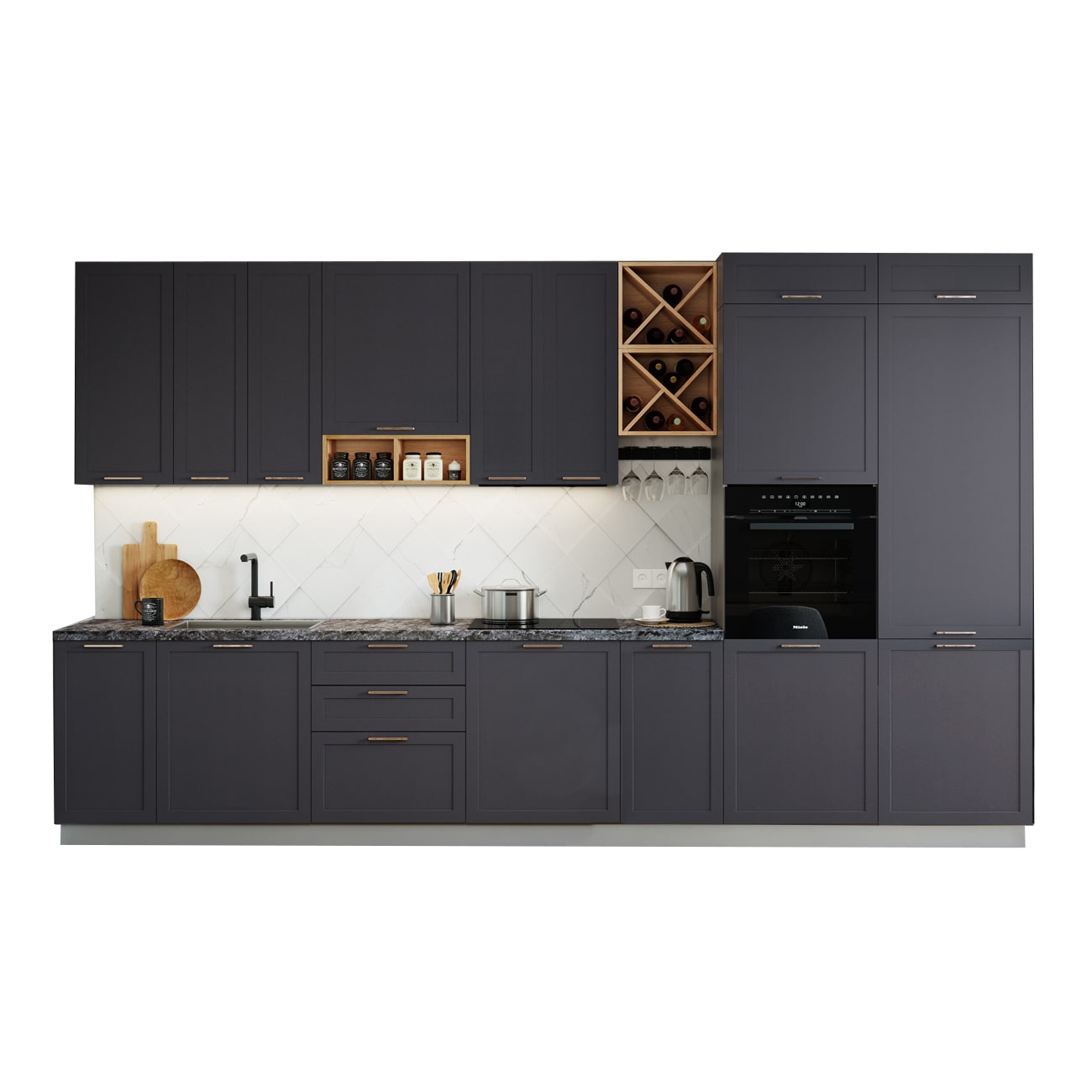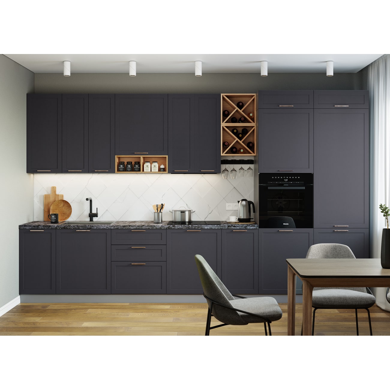 Отличный бюджетный вариант. В магазине предложили добавить доводчики, был хороший выбор фасадов, укомплектовали мойкой, сушилкой и прочим. Корпусы ЛДСПшные, серого цвета - это плюс. Необычная текстура у фасадов.