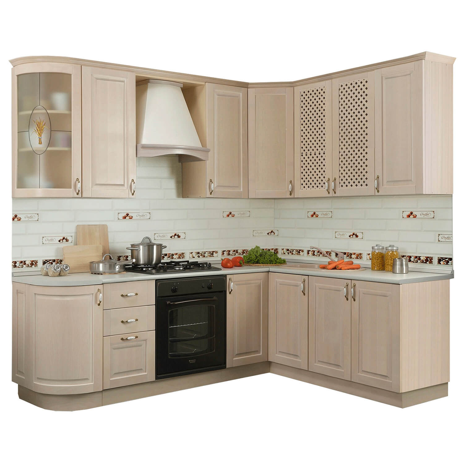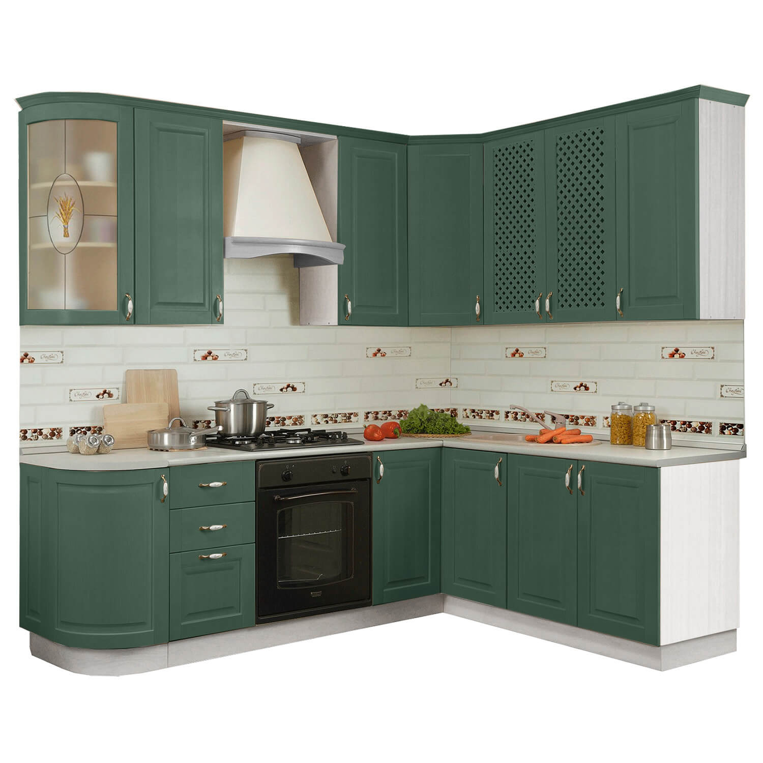 Кухня Массив угловая 1800х1735 мм витраж левая доступна к заказу в различных цветовых исполнениях, подходящих к любому интерьеру обеденной зоны.