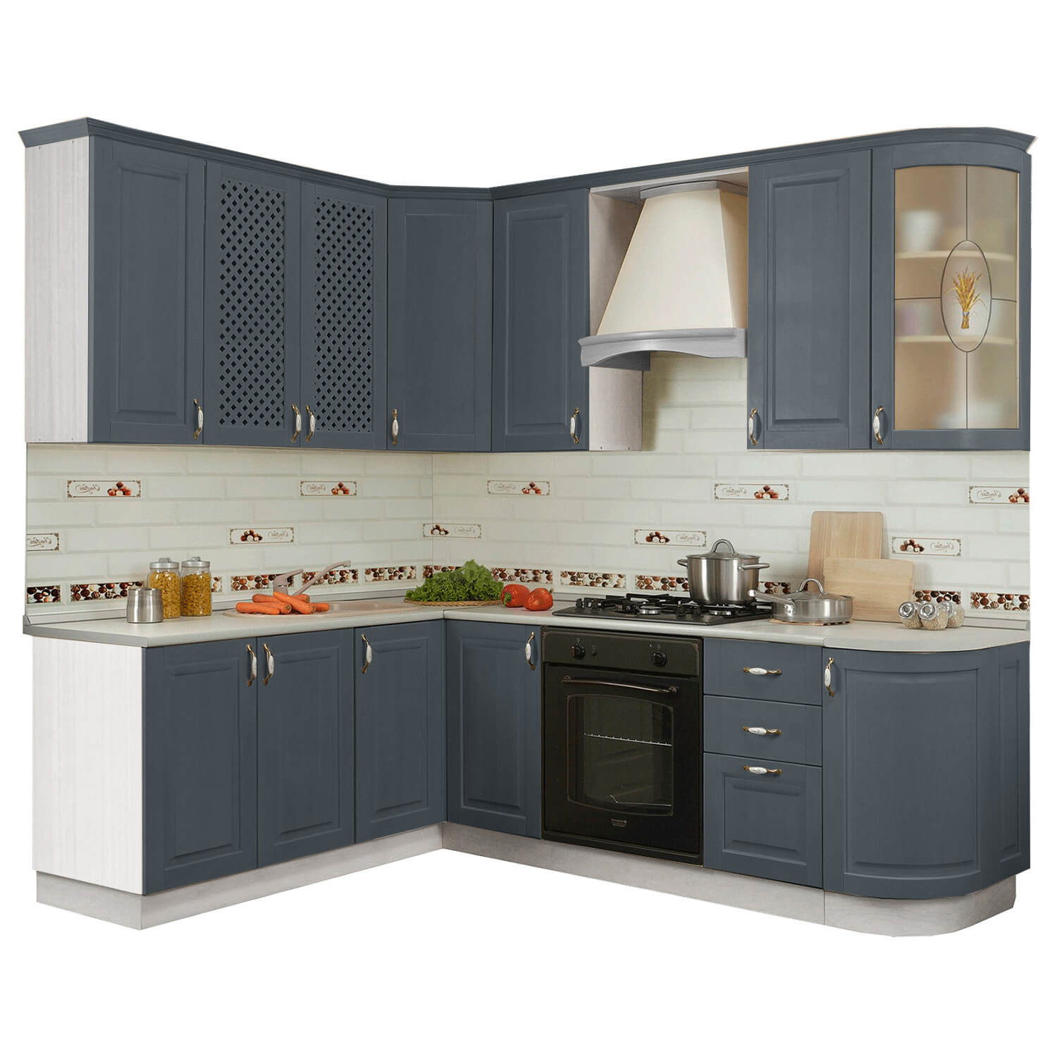 Кухня Массив угловая 1800х1735 мм витраж правая доступна к заказу в различных цветовых исполнениях, подходящих к любому интерьеру обеденной зоны.