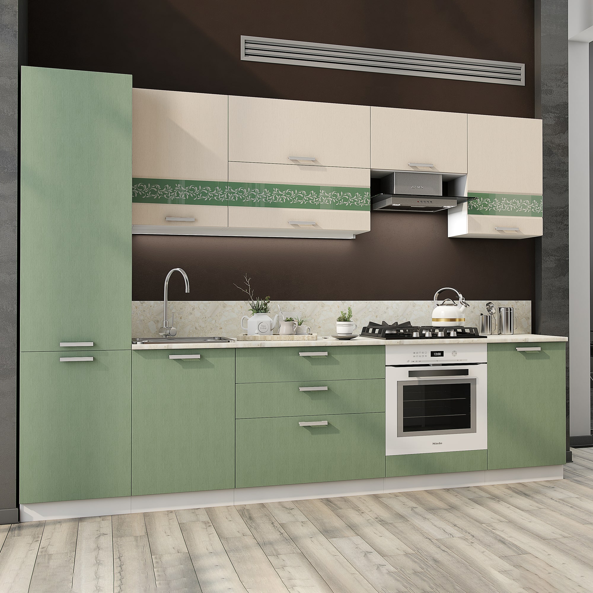 Кухня Милена 2900 Шато крем/Шато Бали, материал корпуса - ЛДСП, габариты 2900x600x2140 мм.
