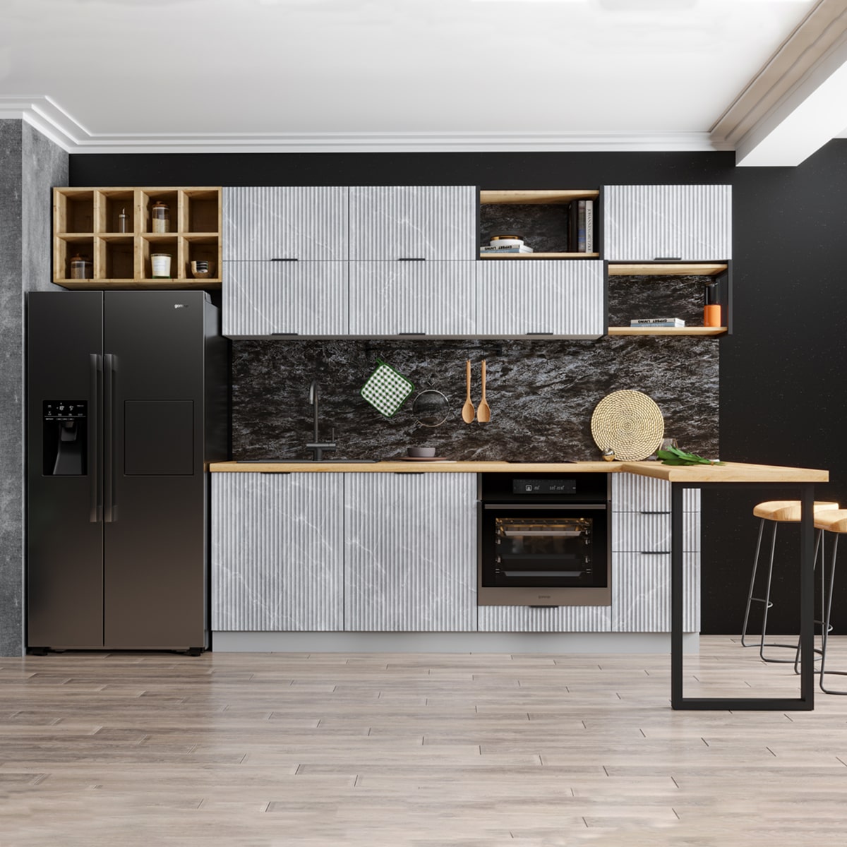 Кухонный гарнитур Монца 3200 Гранит Маус доступна к заказу в различных цветовых исполнениях, подходящих к любому интерьеру обеденной зоны.