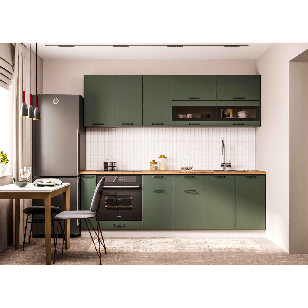 Кухонный гарнитур Ройс 2400 Оливково-зеленый, материал корпуса - ЛДСП, габариты 2400x600x2150 мм.