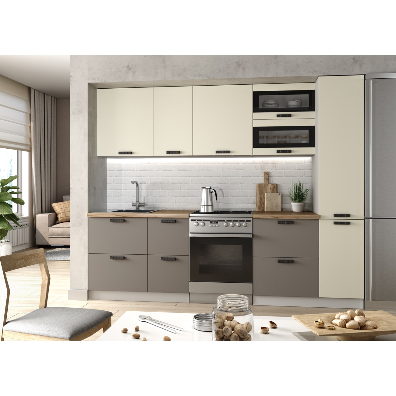 Супер кухня! Был большой выбор фасадов и фурнитуры. Остановился на Грей софт. В масштабе всей кухни выглядит очень стильно. Рекомендую!