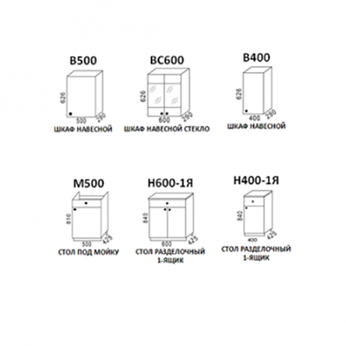Состоит из модулей: Верх (в500, вс600, в400); низ (м500, н600-1я, н400-1я)
