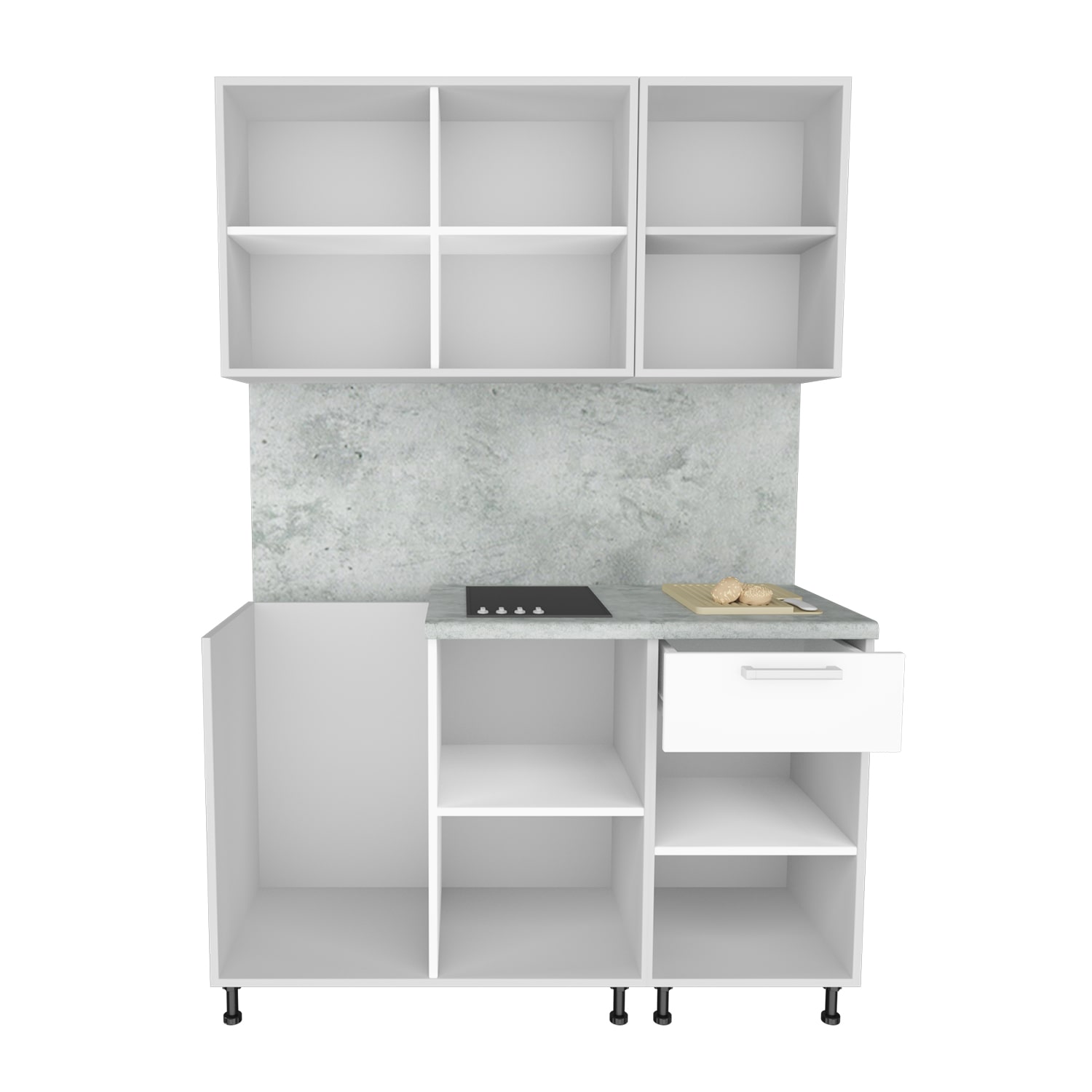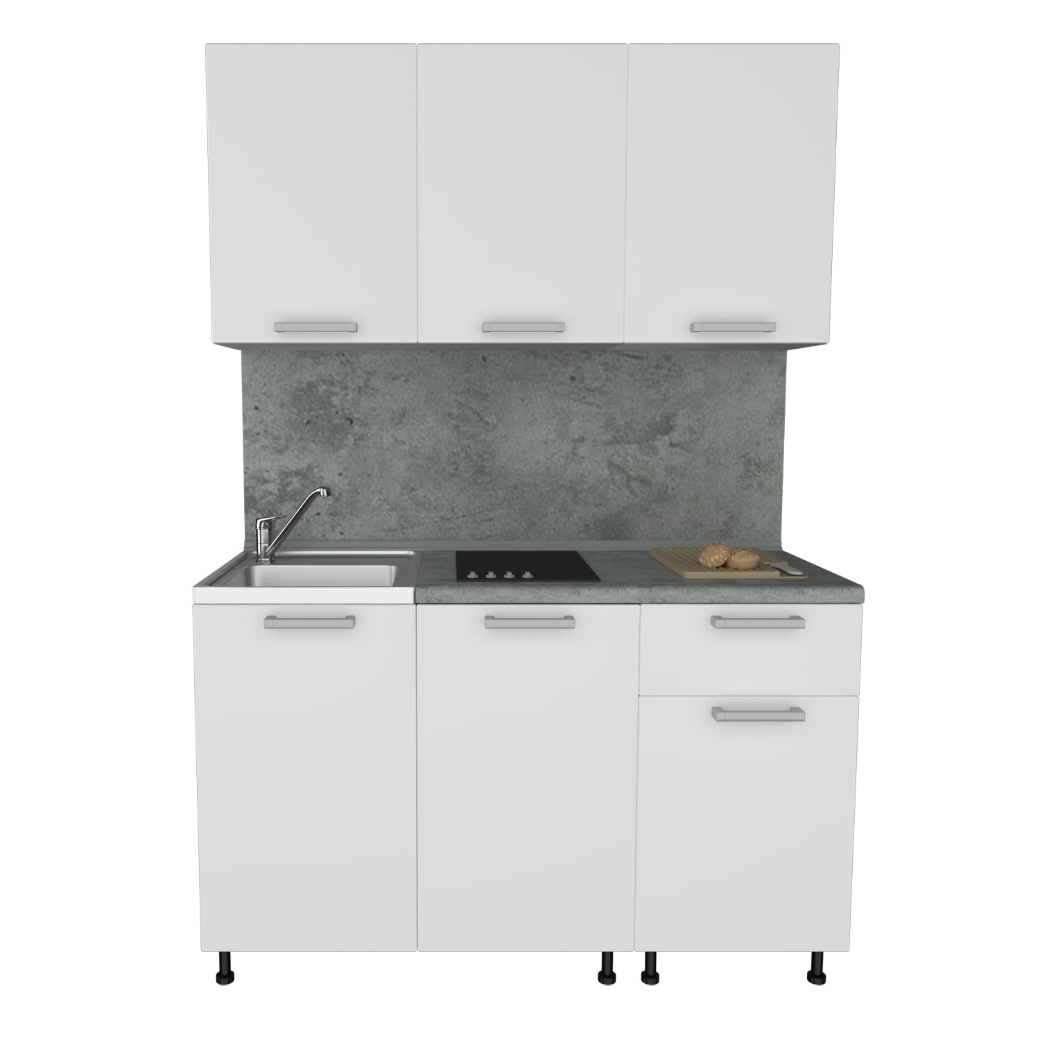 Здравствуйте! Хочу поделиться впечатлениями по использованию данной кухни. У нас она установлена уже около года. И в целом со своей задачей справляется. Жаль, что когда мы покупали не было дверей в голубых тонах. В итоге мы взяли бетон вниз и белый наверх. Белый очень маркий оказался, постоянно приходится его намывать. Этот цвет подойдет, только если на кухне не готовить!