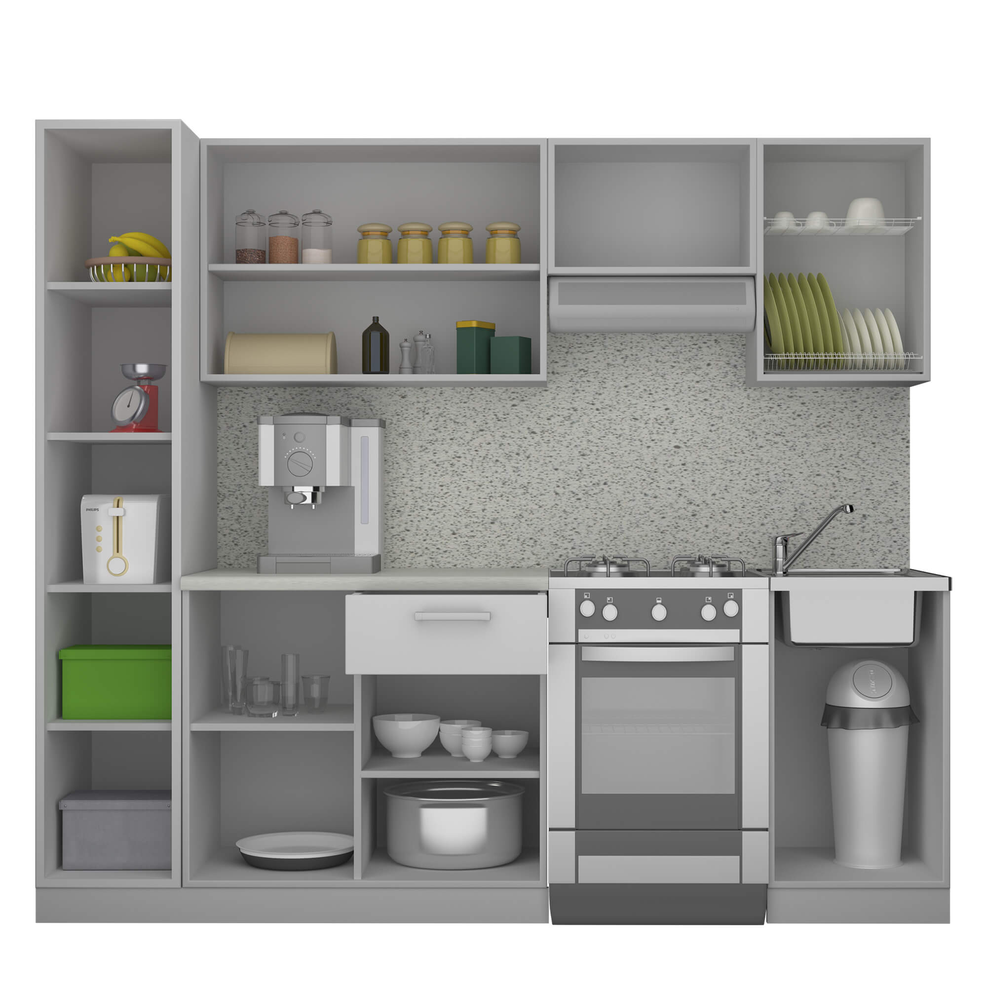 Сама кухня пришла в разобранном виде, все шкафы в коробках с фурнитурой и инструкцией. Петли все вместе в одном пакете с планками, заглушками и прочим. Сушилку привезли просто упакованную в полиэтилен. Но, все доехало в полном комплекте.