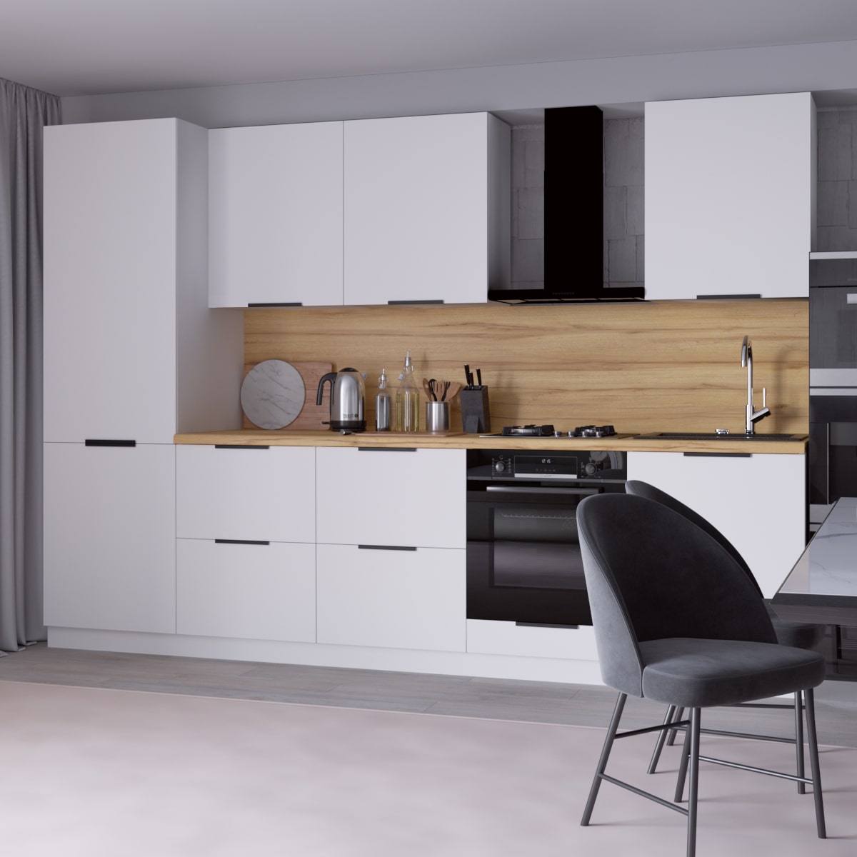 Кухня Сити 3000 Белый матовый, материал корпуса - ЛДСП, габариты 3000x600x2100 мм.