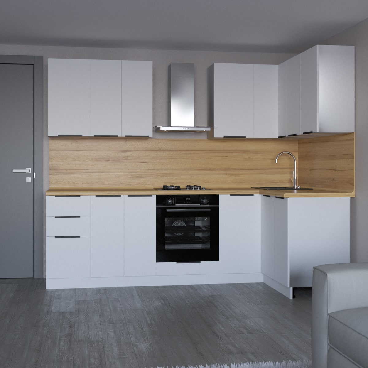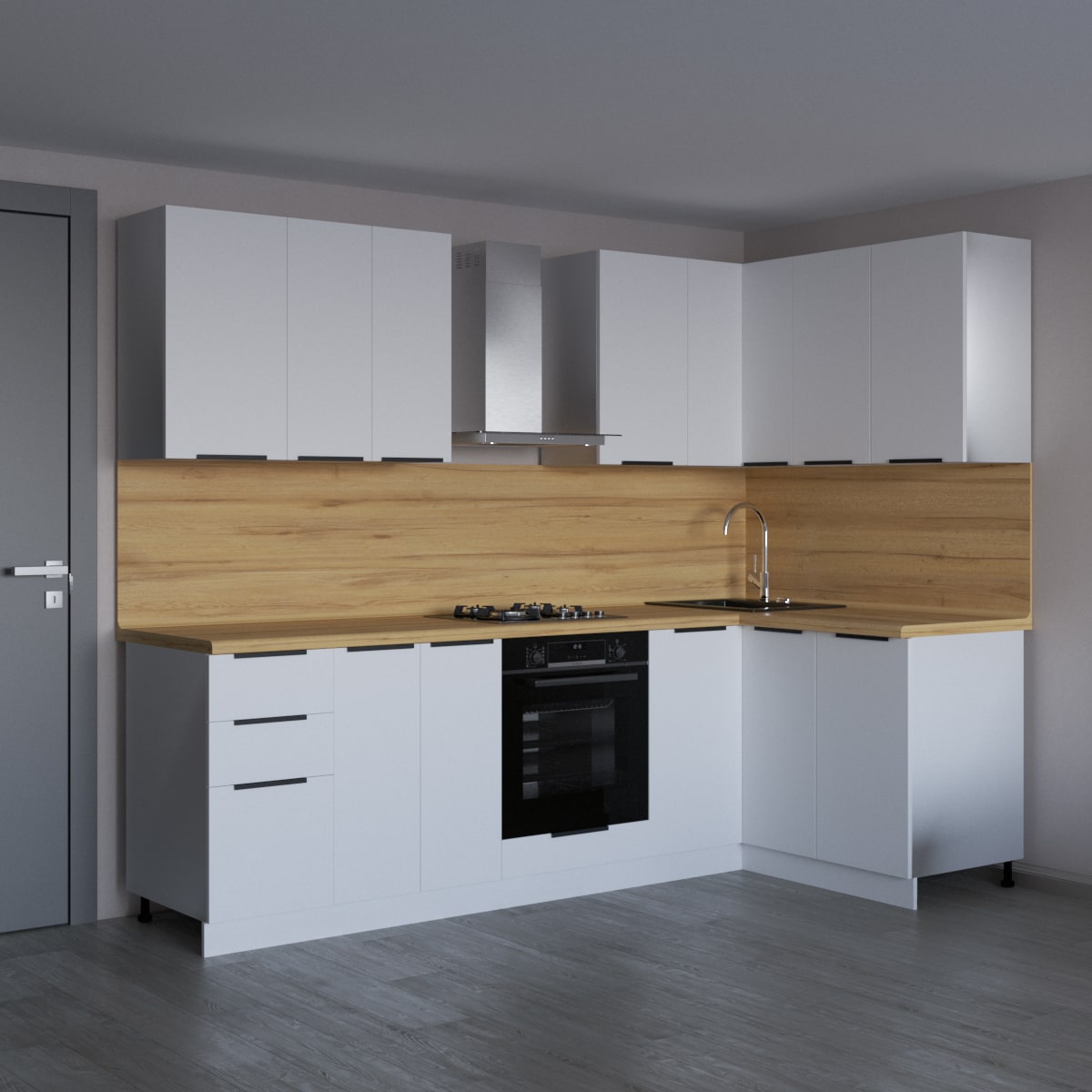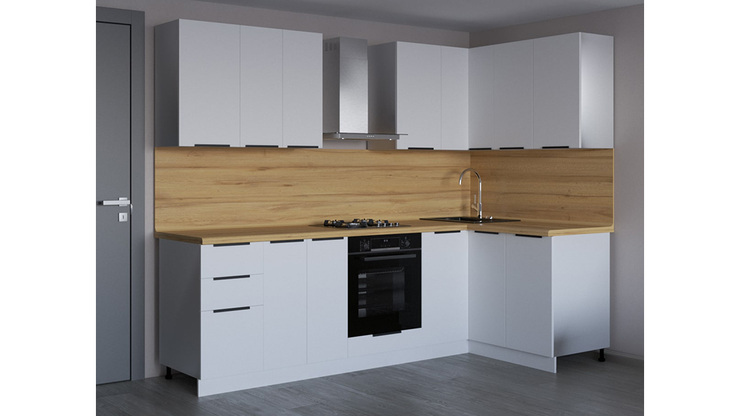 Кухня Сити угловая 2600х1400 Белый матовый, материал корпуса - ЛДСП, габариты 2600x1400x2100 мм.
