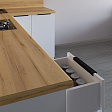 Угловая кухня “Сити” представляет собой идеальное сочетание элегантности и практичности. Она выполнена в современном стиле, что делает ее универсальной для любого интерьера и позволяет легко сочетать с другими элементами декора. Фасады кухни изготовлены из высококачественного МДФ, благодаря чему они обладают повышенной устойчивостью к повреждениям и легко чистятся. Контрастные черные ручки придают кухне гармоничное и стильное завершение.