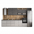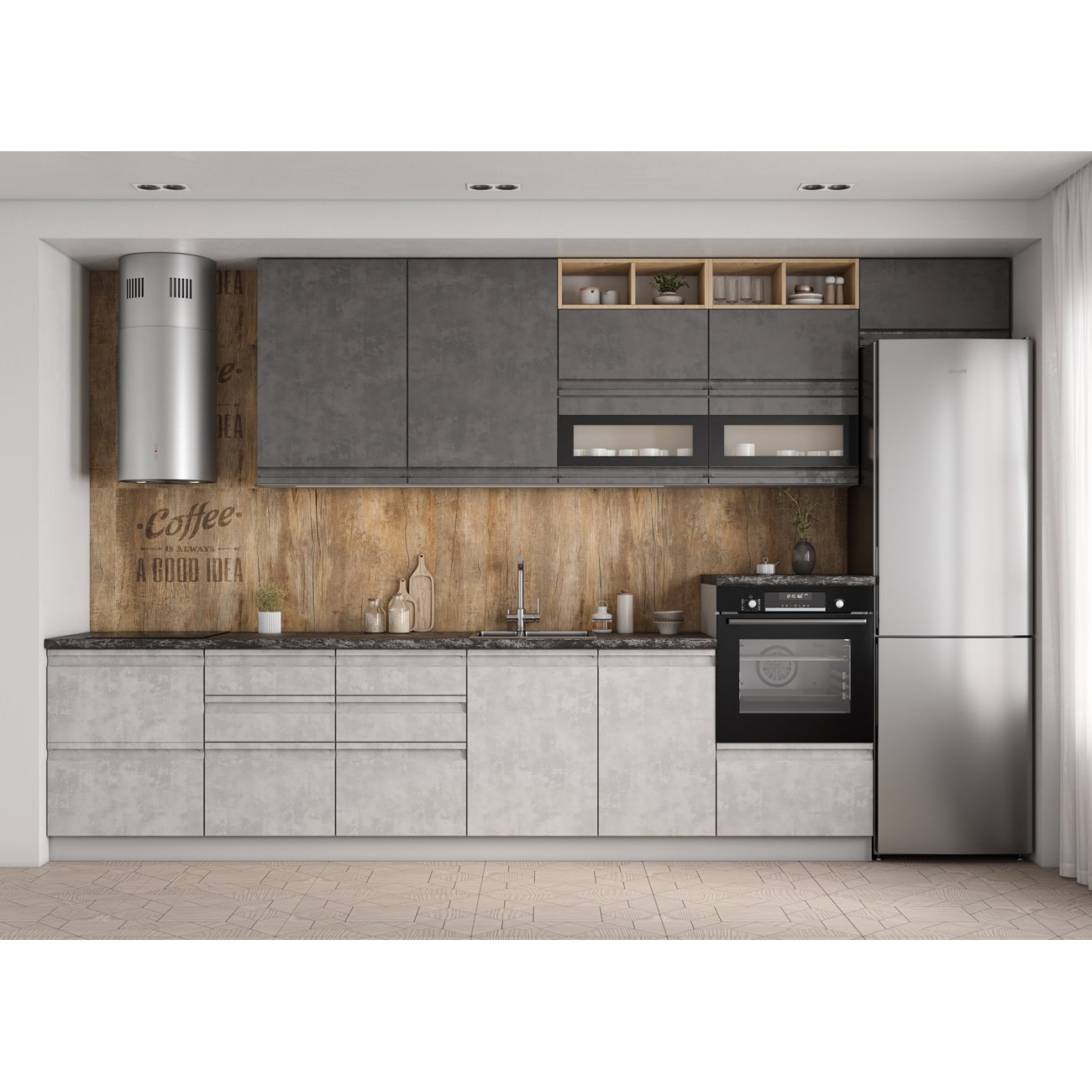 Кухонный гарнитур Скала 3150 Бетон темный/Бетон светлый, материал корпуса - ЛДСП, габариты 3150x600x2350 мм.