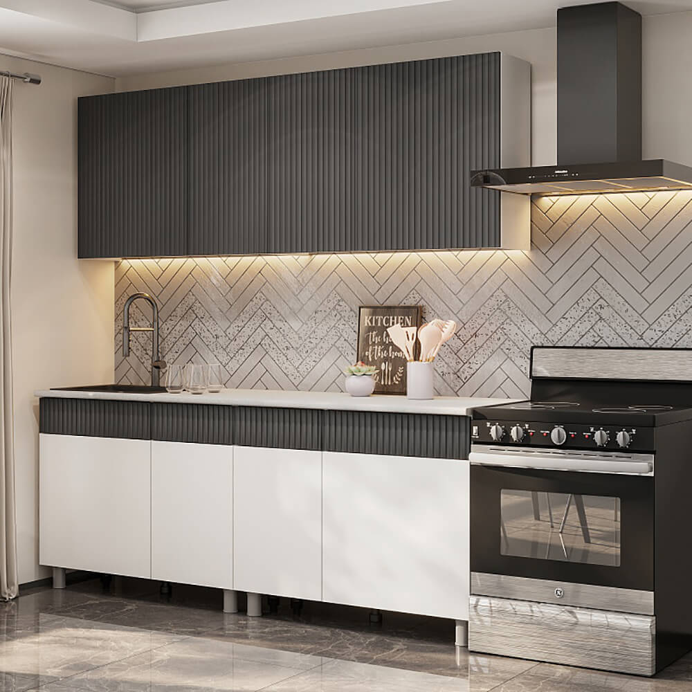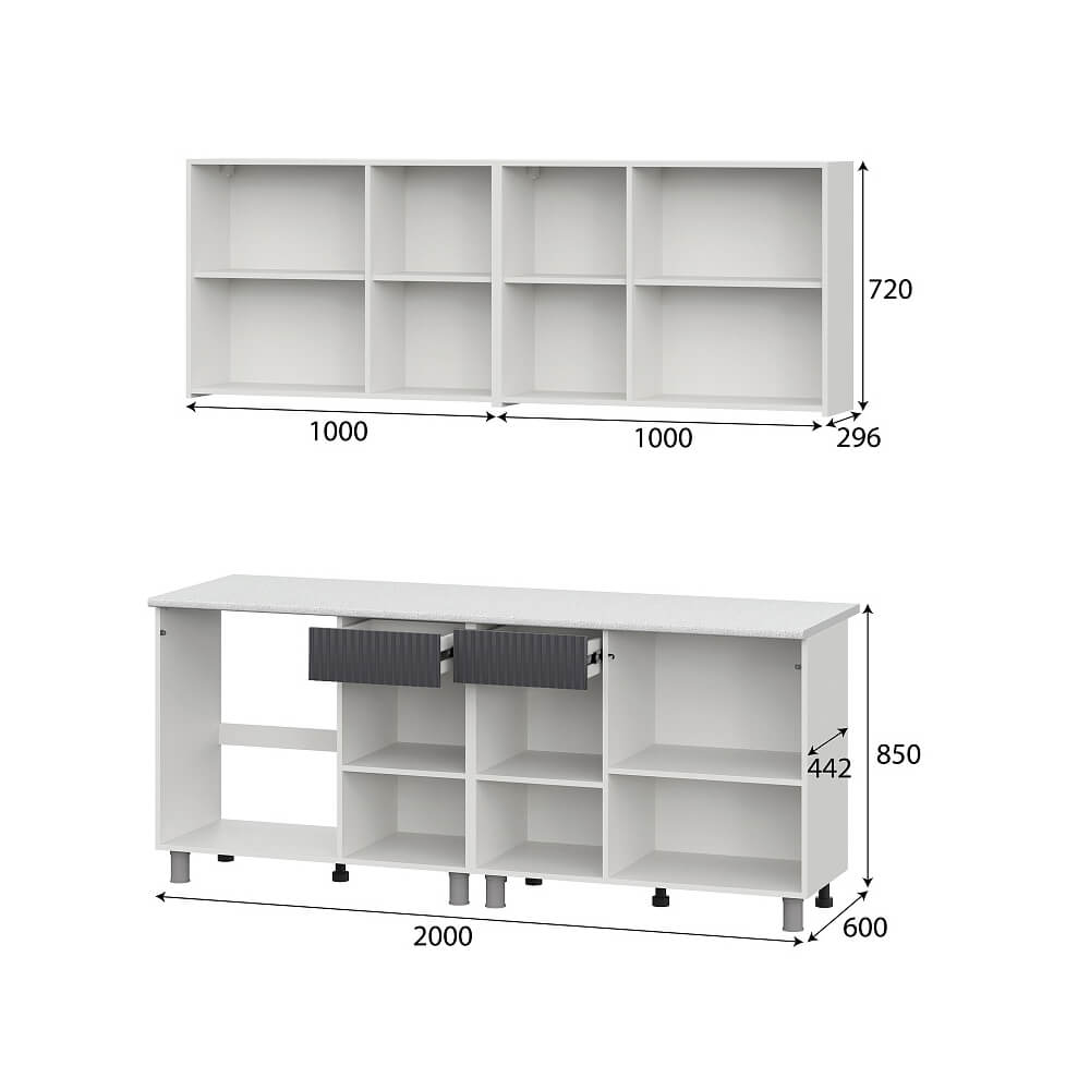 Кухня София 2,0 Белый/Бланж/Графит матовый/Антарес, материал корпуса - ЛДСП, габариты 2000x600x2142 мм. Материал корпуса: ЛДСП
