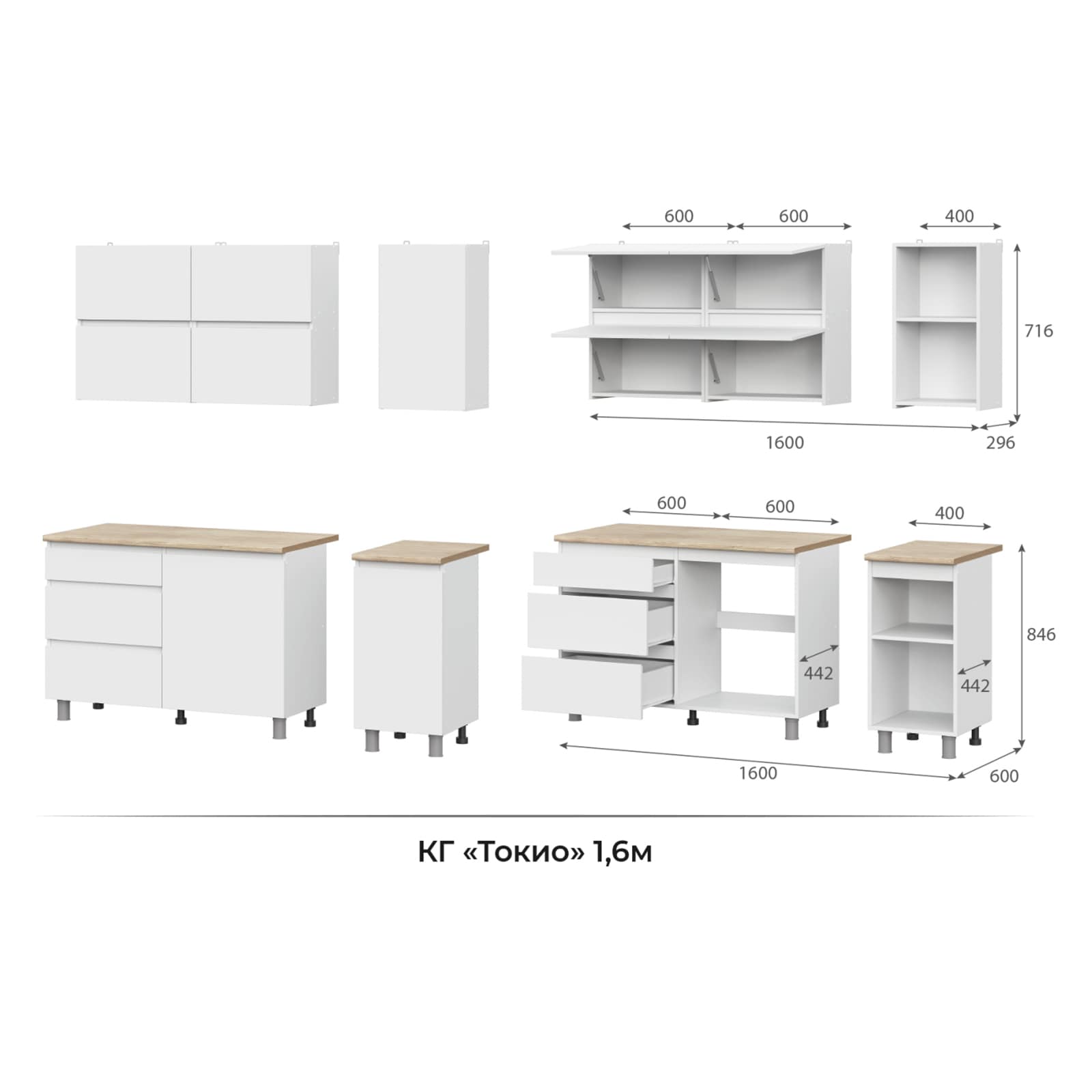 Все модули комплектуются столешницей.