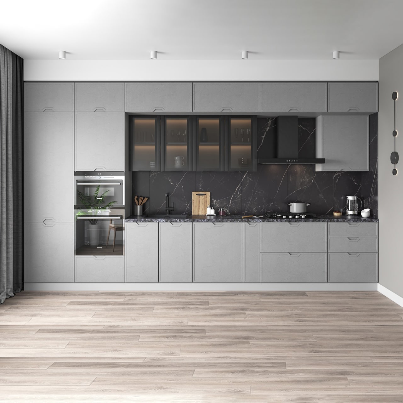 Кухонный гарнитур Арка 4200 Штукатурка серая доступна к заказу в различных цветовых исполнениях, подходящих к любому интерьеру обеденной зоны.