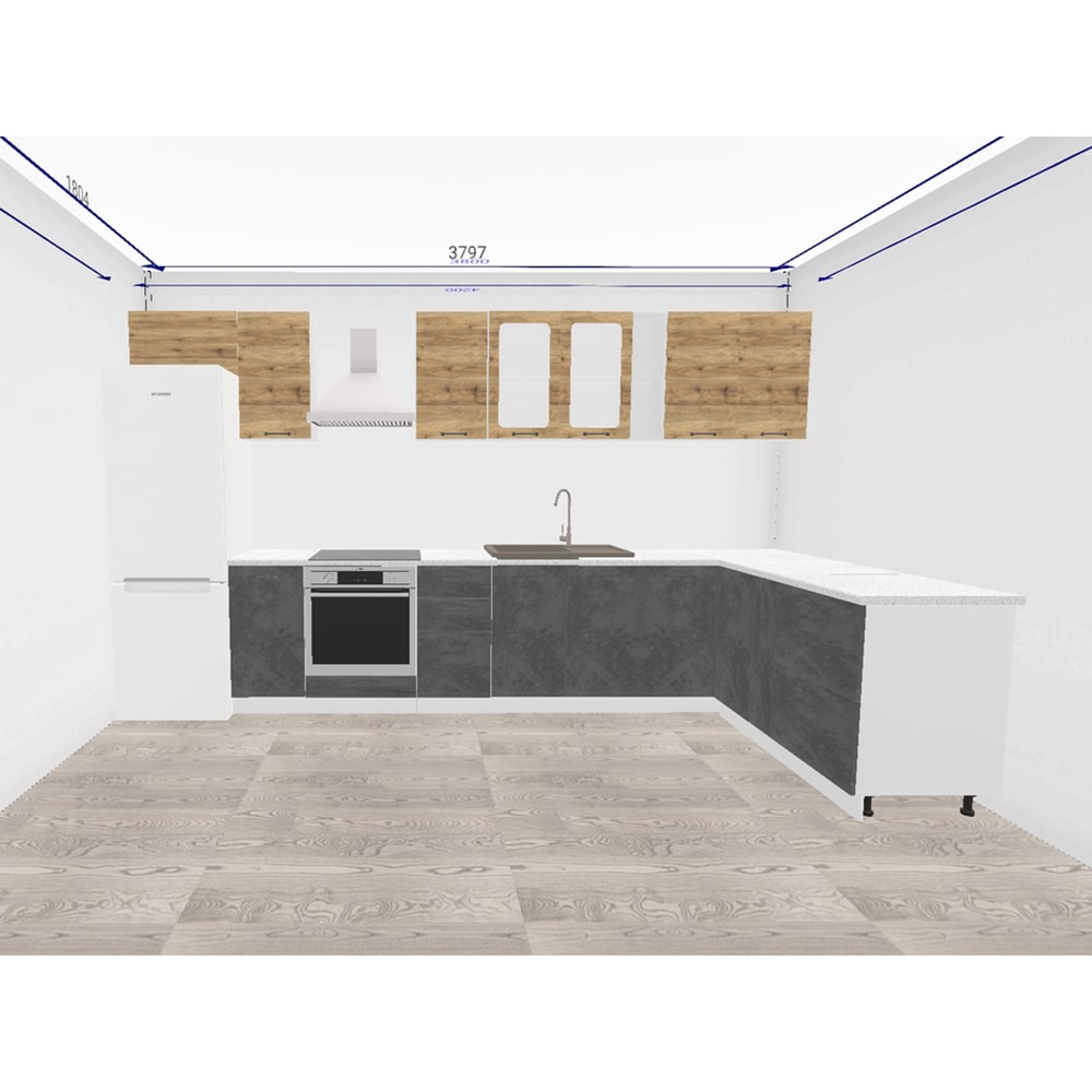 Кухонный гарнитур Лофт 3800х1800 Бетон темный/Дуб цикорий, материал корпуса - ЛДСП, габариты 3800x1800x2200 мм.