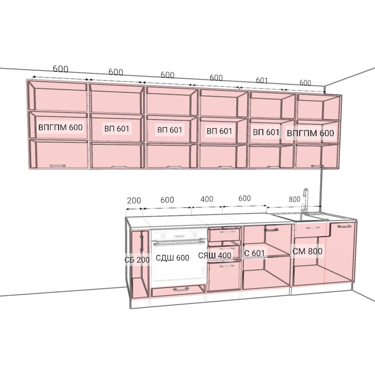 Столешница и техника заказывается отдельно!