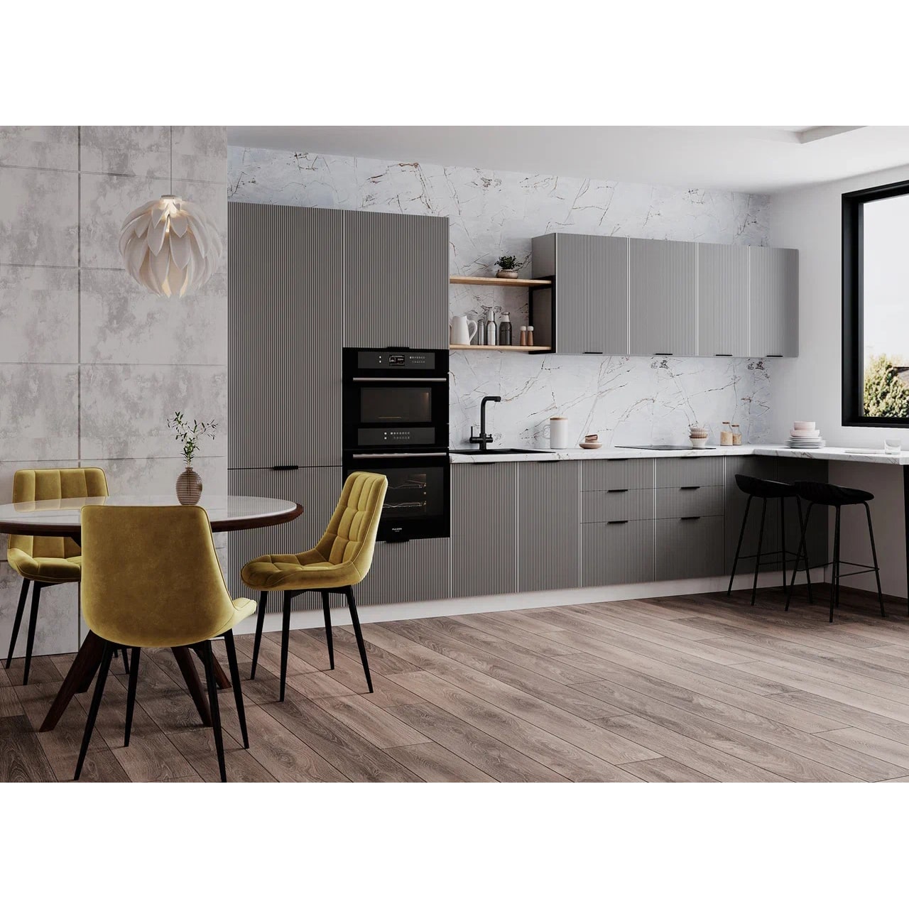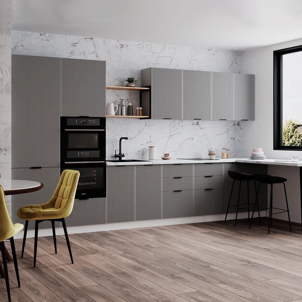 Кухонный гарнитур Монца 3600 Гранит маус доступна к заказу в различных цветовых исполнениях, подходящих к любому интерьеру обеденной зоны.