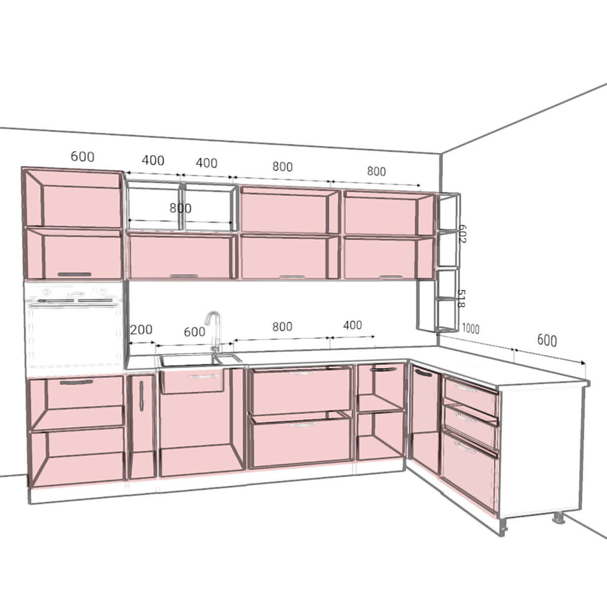 Столешница и техника заказывается отдельно!