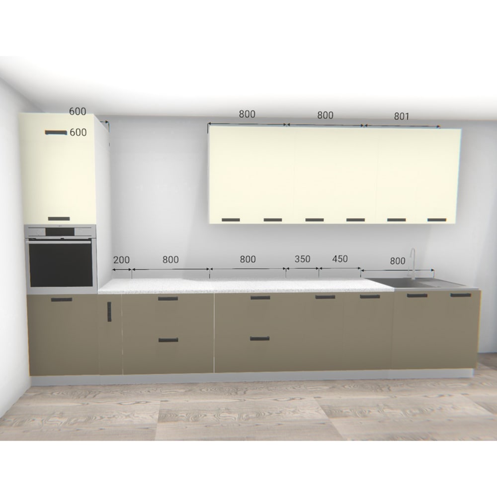 Кухонный гарнитур Ройс 4000 Ваниль софт/Грей софт, материал корпуса - ЛДСП, габариты 4000x600x2350 мм.