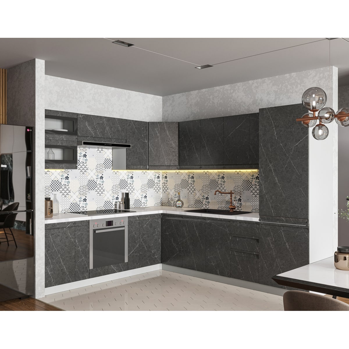 Кухонный гарнитур Скала 2800х2600 Гранит грей доступна к заказу в различных цветовых исполнениях, подходящих к любому интерьеру обеденной зоны.