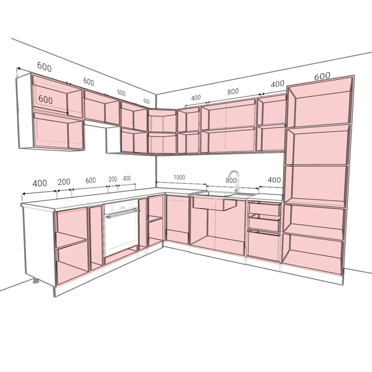 Столешница и техника заказывается отдельно!