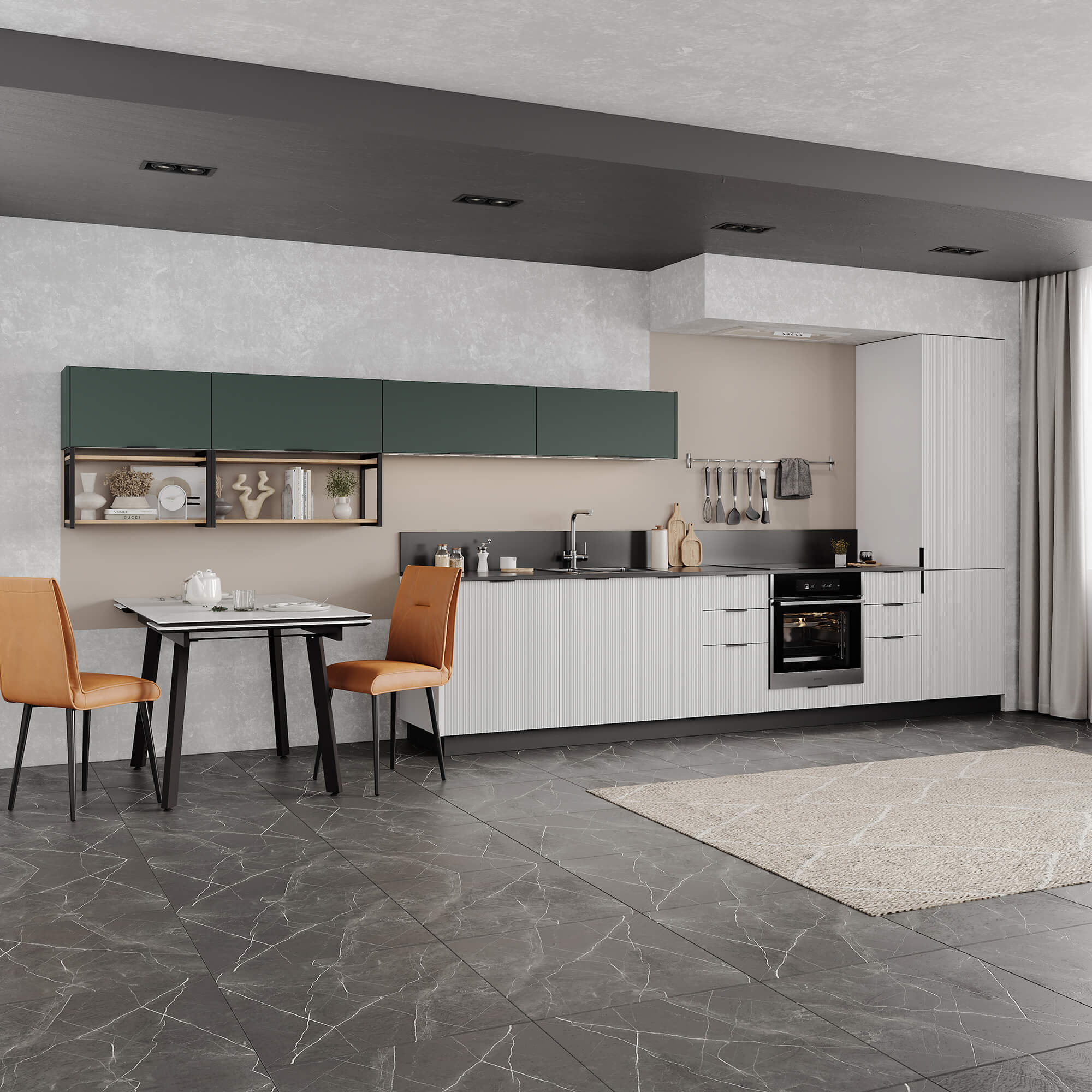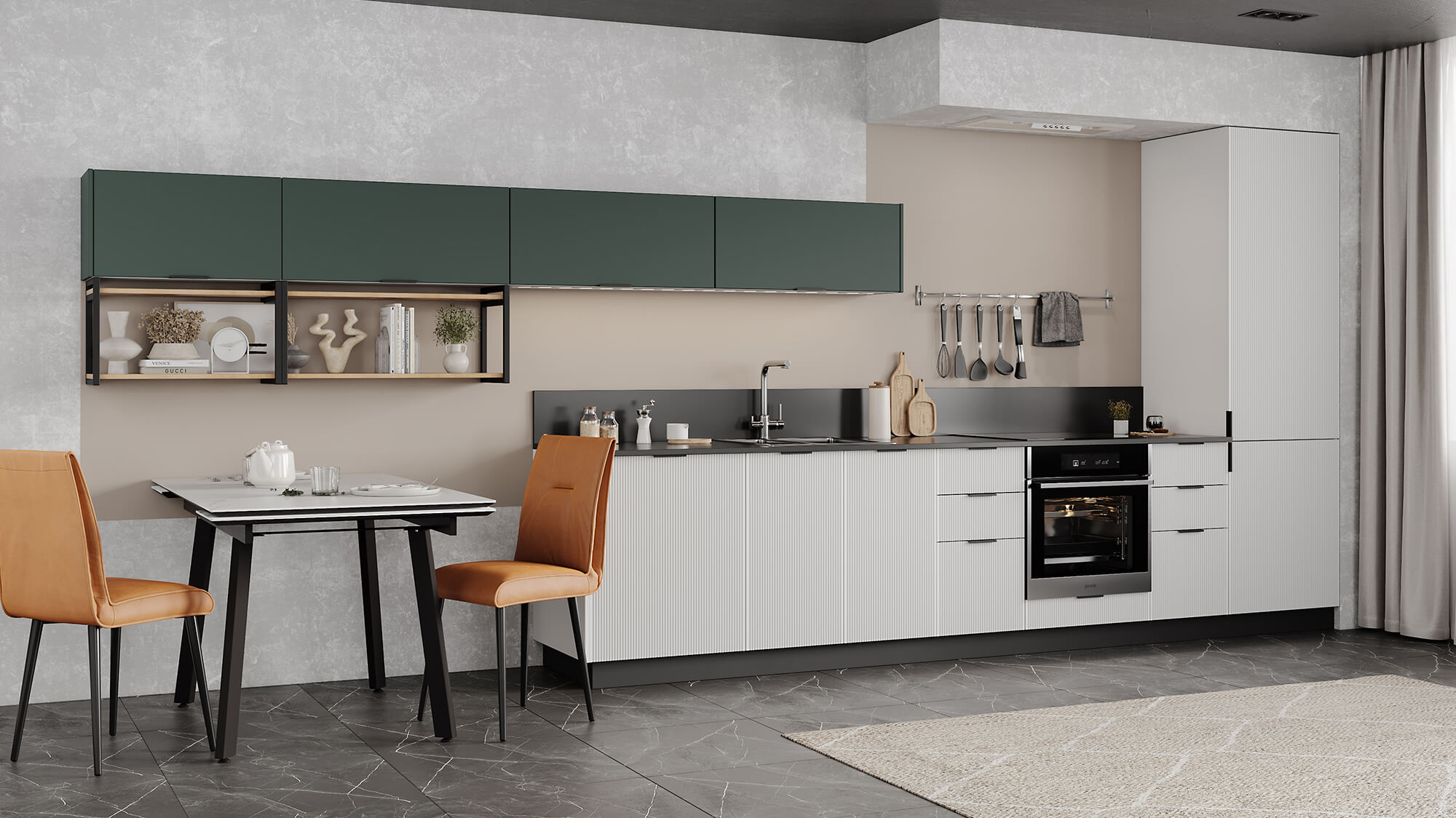 Кухни Виано — новая линейка кухонь NORMA в пленках уникальной устойчивости. Это ПВХ пленка, которая объединила в себе преимущества премиального внешнего вида эмали и устойчивость к механическим повреждениям и агрессивным веществам от ПЭТ. Такие фасады имеют гладкую, тактильно приятную поверхность, которая полностью повторяет эффект эмали.