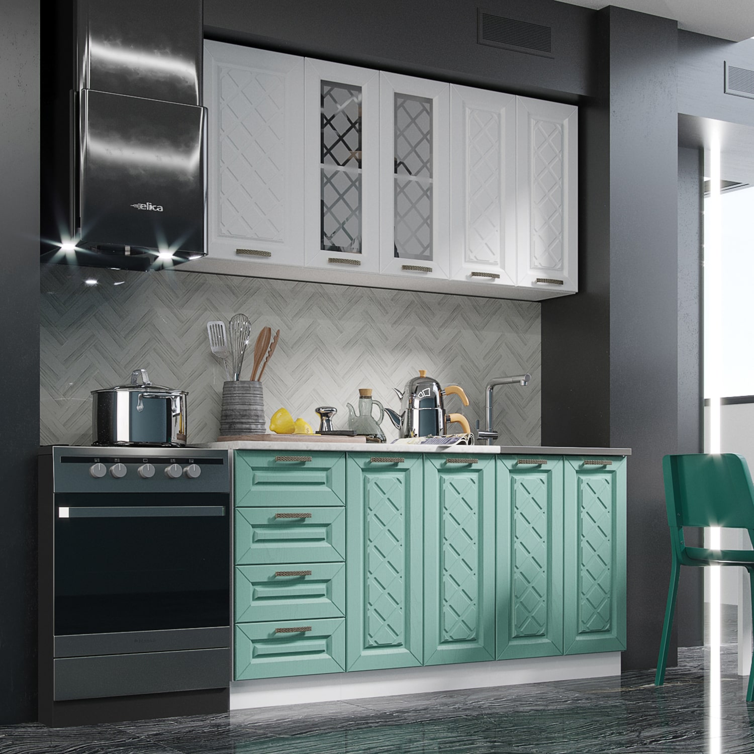 Кухня Агава 1600 Белый/Акация белая/Мята доступна к заказу в различных цветовых исполнениях, подходящих к любому интерьеру обеденной зоны.