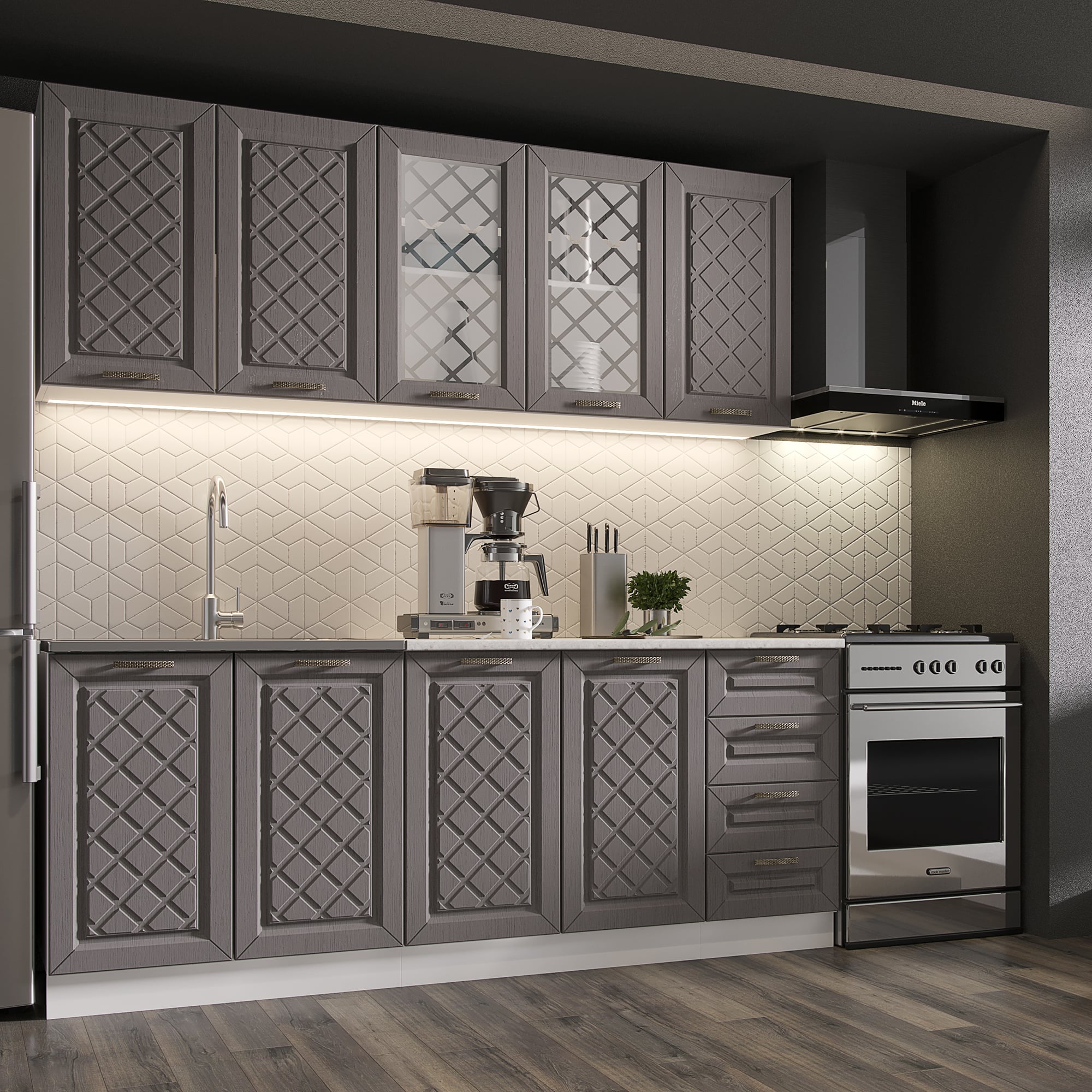 Кухня Агава 2000 Трюфель, материал корпуса - ЛДСП, габариты 2000x600x2100 мм.
