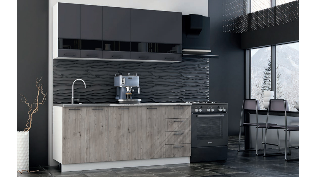 Кухня Астра 1800 Графит софт/Дуб галиано доступна к заказу в различных цветовых исполнениях, подходящих к любому интерьеру обеденной зоны.