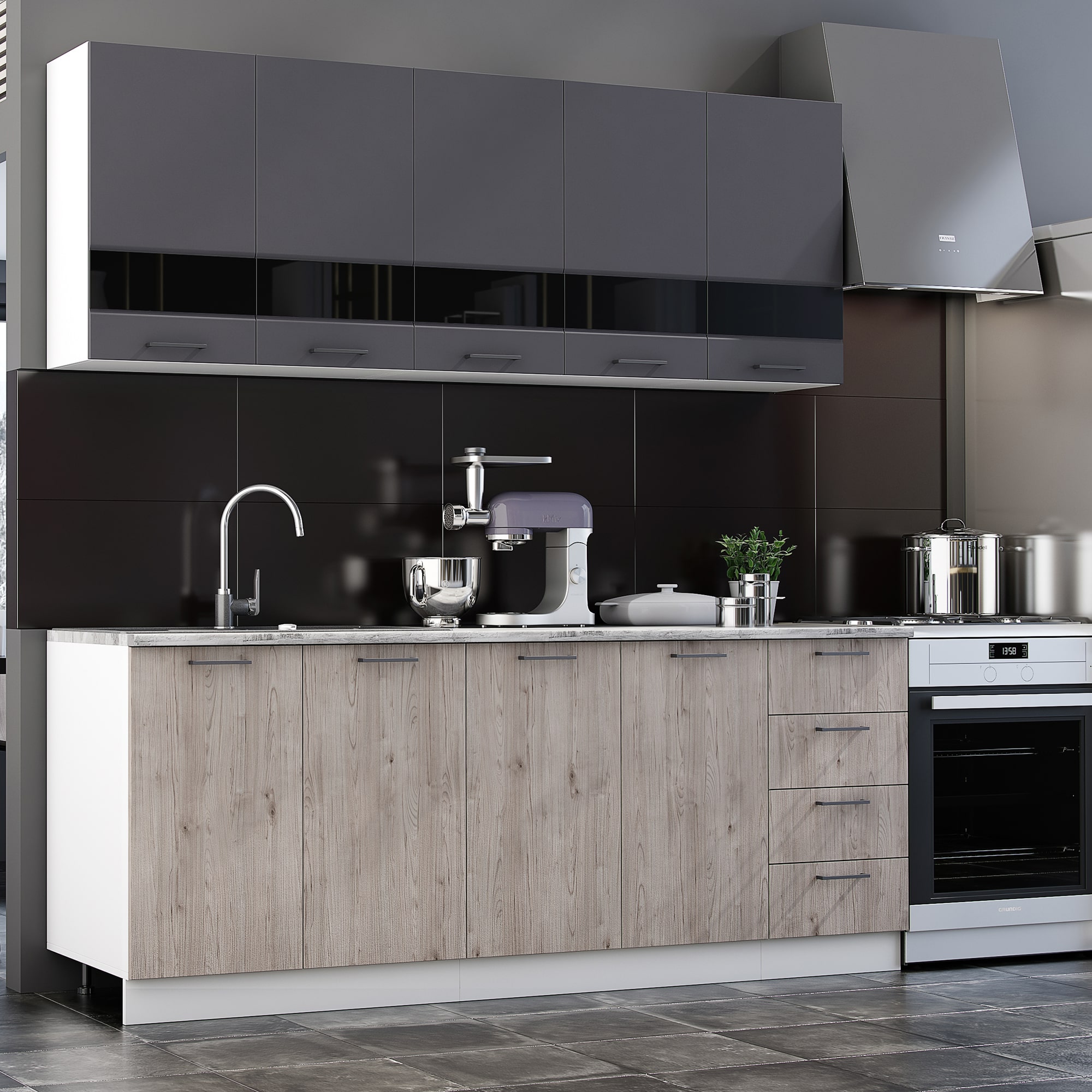 Кухня Астра 2000 Графит софт/Дуб галиано, материал корпуса - ЛДСП, габариты 2000x600x2140 мм.