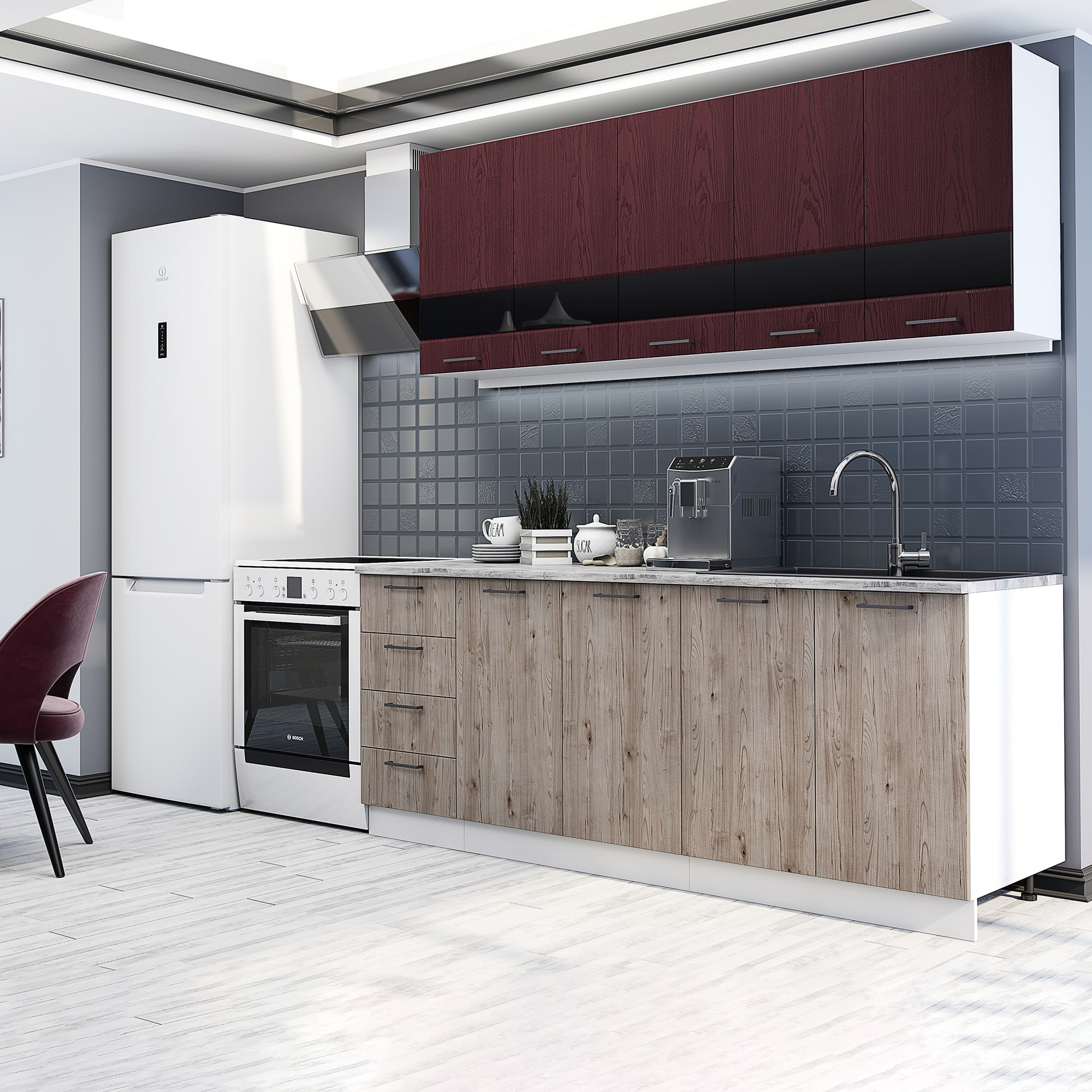 Кухня Астра 2000 Красное дерево патина/Дуб галиано, материал корпуса - ЛДСП, габариты 2000x600x2140 мм.