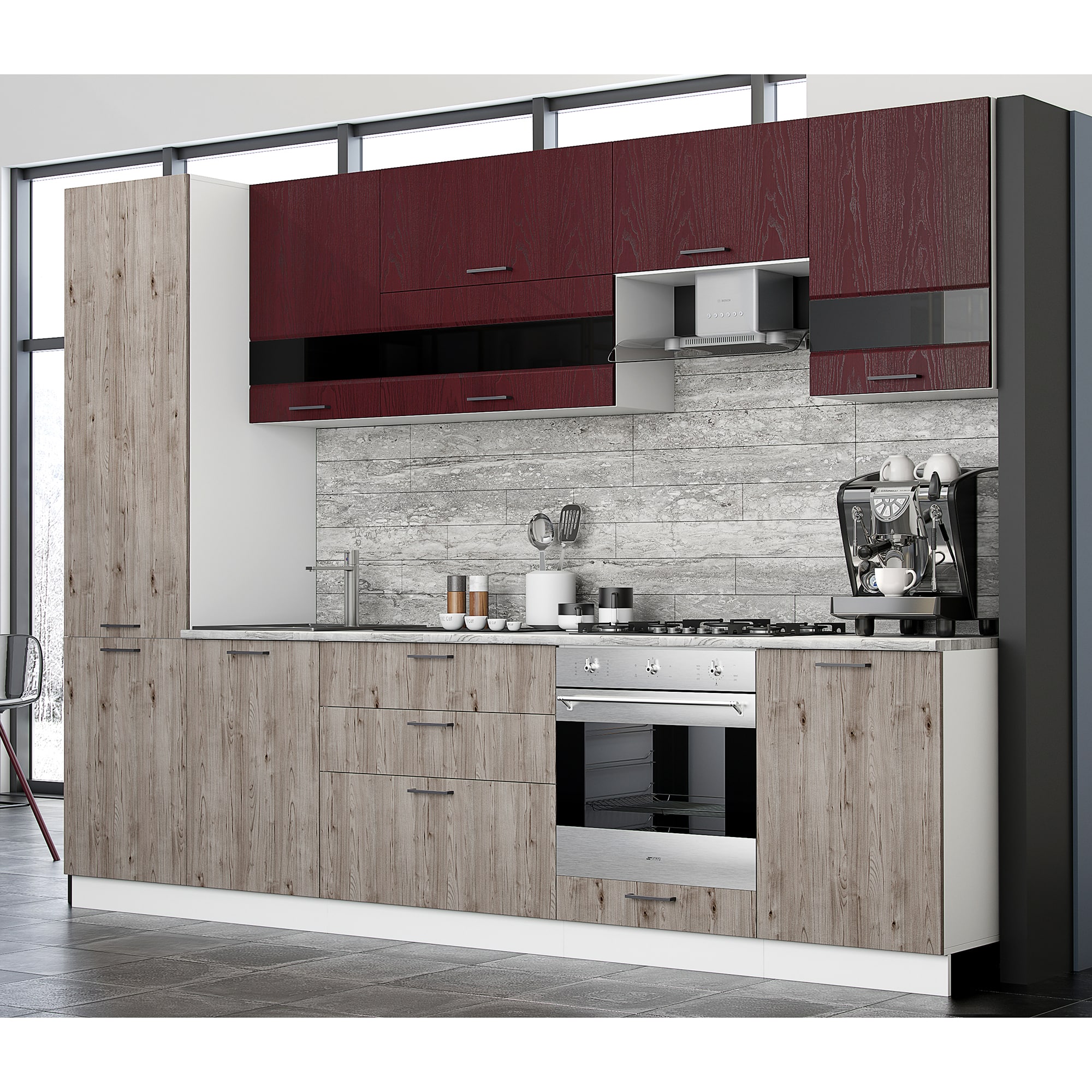 Кухня Астра 2900 Красное дерево/Дуб галиано доступна к заказу в различных цветовых исполнениях, подходящих к любому интерьеру обеденной зоны.