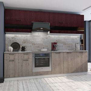 Кухня Астра 2900 Красное дерево/Дуб галиано, материал корпуса - ЛДСП, габариты 2900x600x2140 мм.