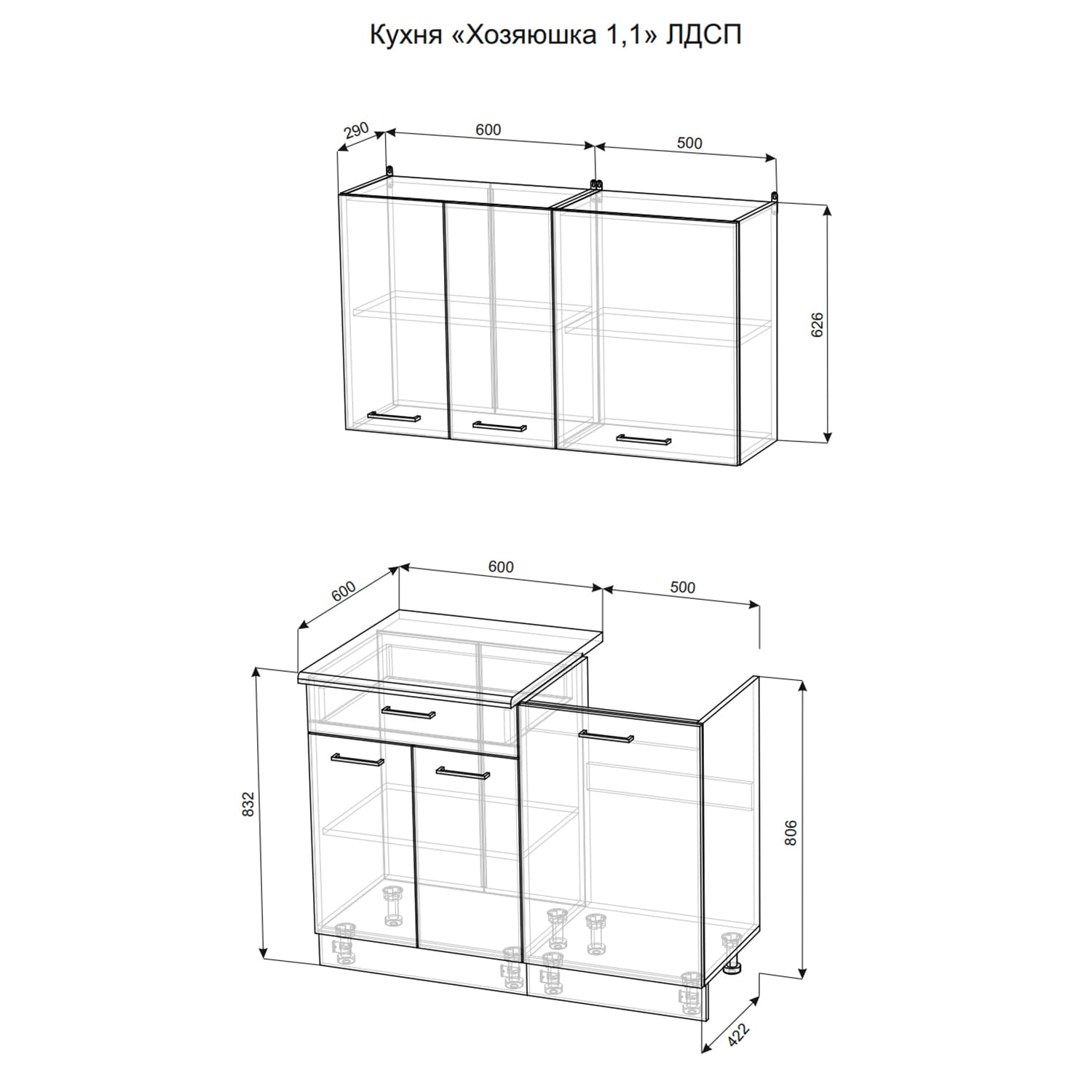 Высота нижних модулей 840 мм
