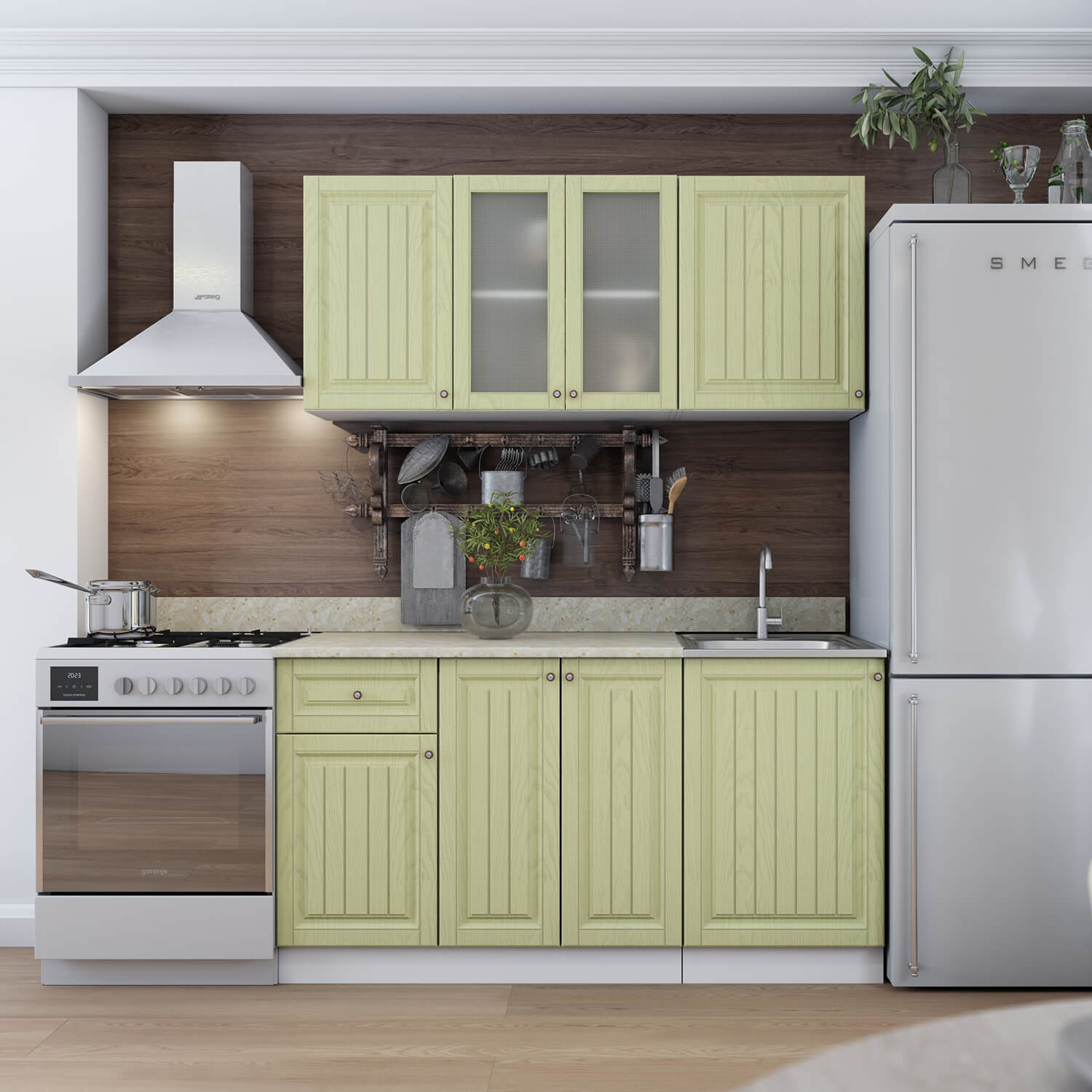Кухня ЭРА Хозяюшка 1,5 Фисташка - это стильный и функциональный кухонный гарнитур, который станет отличным дополнением к интерьеру вашей кухни.