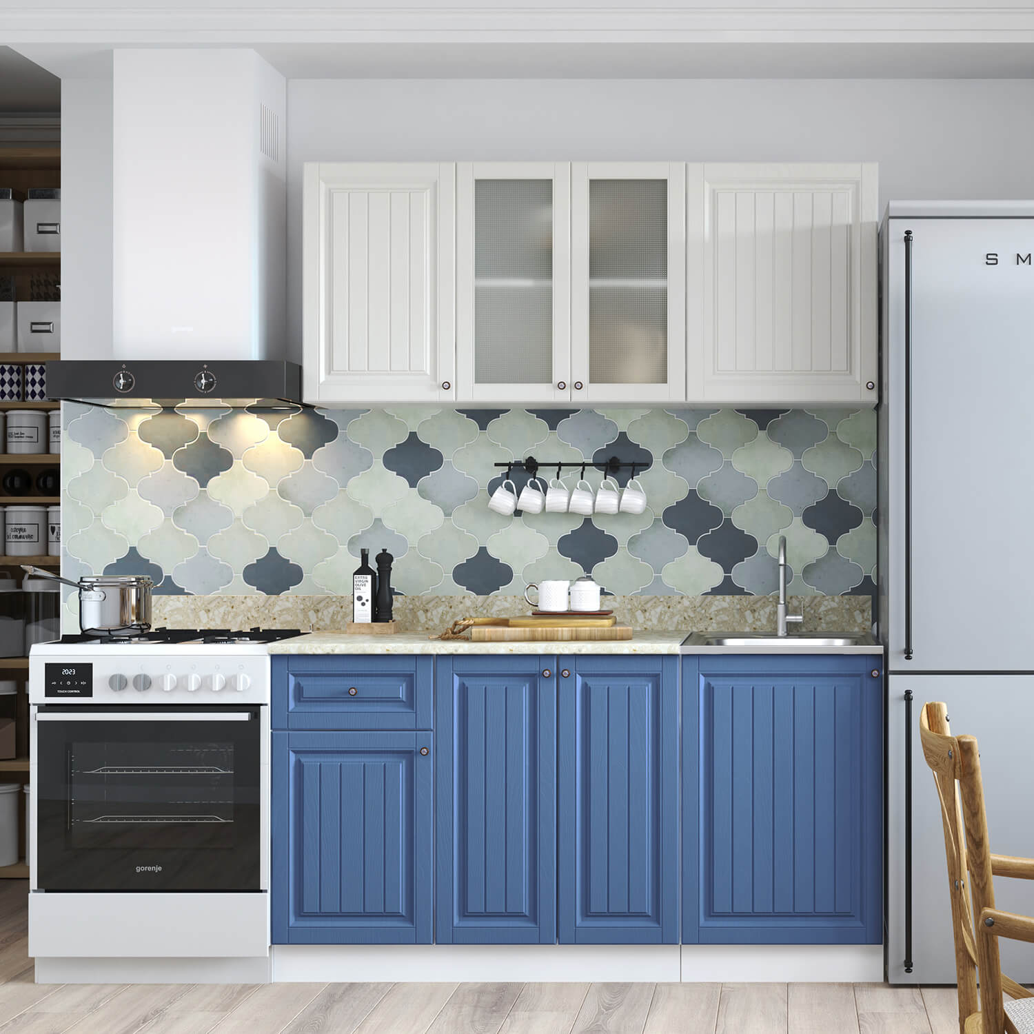 Кухня Хозяюшка 1,5 Акация Белая-Деним доступна к заказу в различных цветовых исполнениях, подходящих к любому интерьеру обеденной зоны.