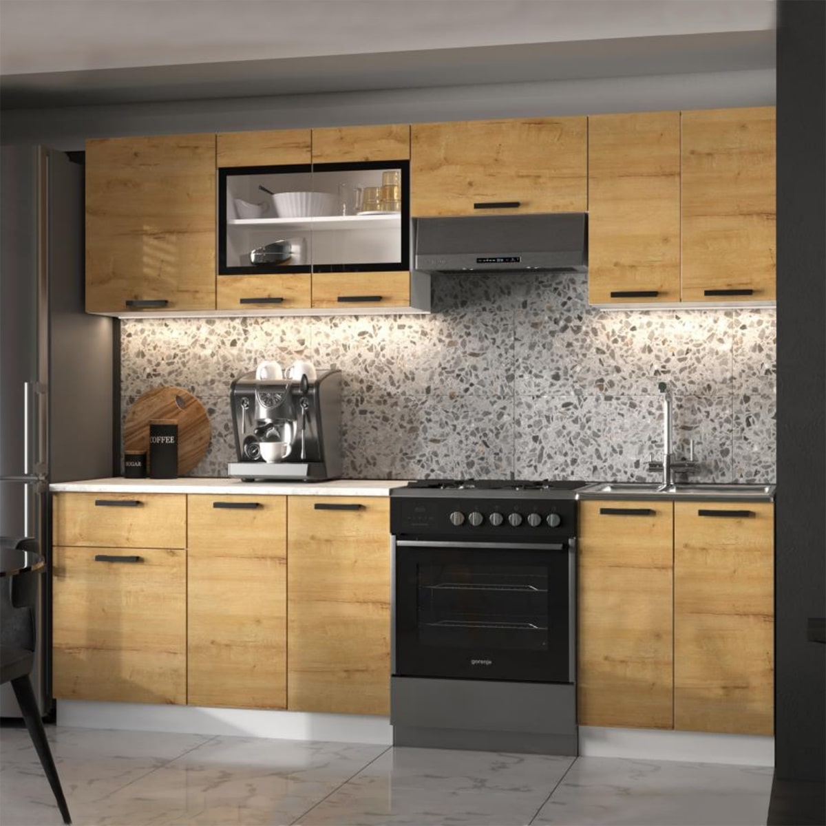 Кухня Хозяюшка 2,4 ЛДСП Дуб Вотан, материал корпуса - ЛДСП, габариты 2400x600x2100 мм.
