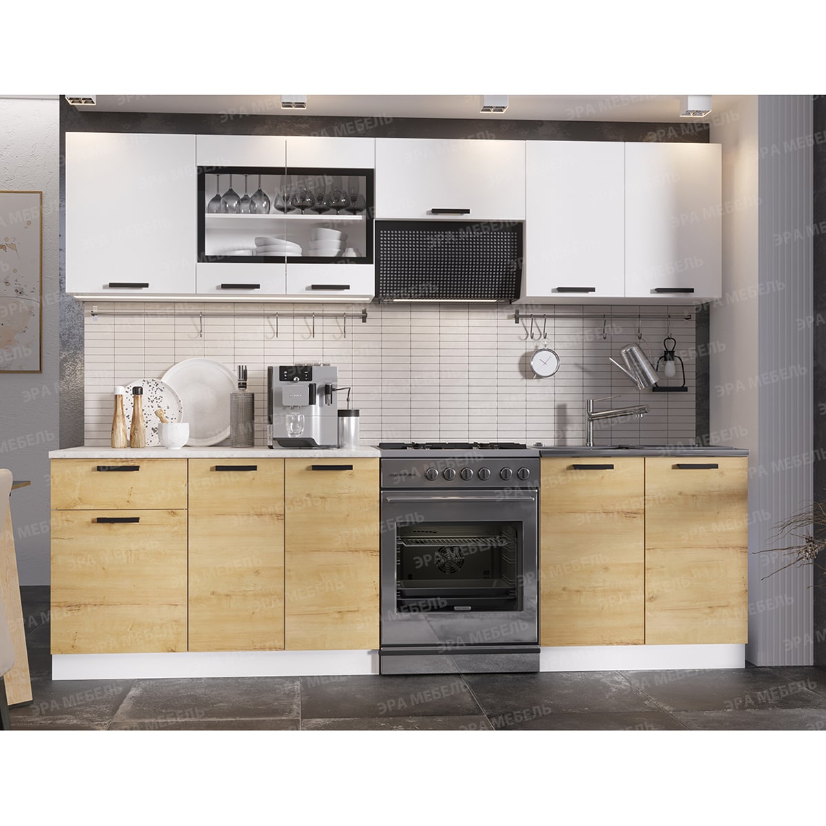 Кухня Хозяюшка 2,6 ЛДСП Белый гладкий/Дуб Вотан доступна к заказу в различных цветовых исполнениях, подходящих к любому интерьеру обеденной зоны.