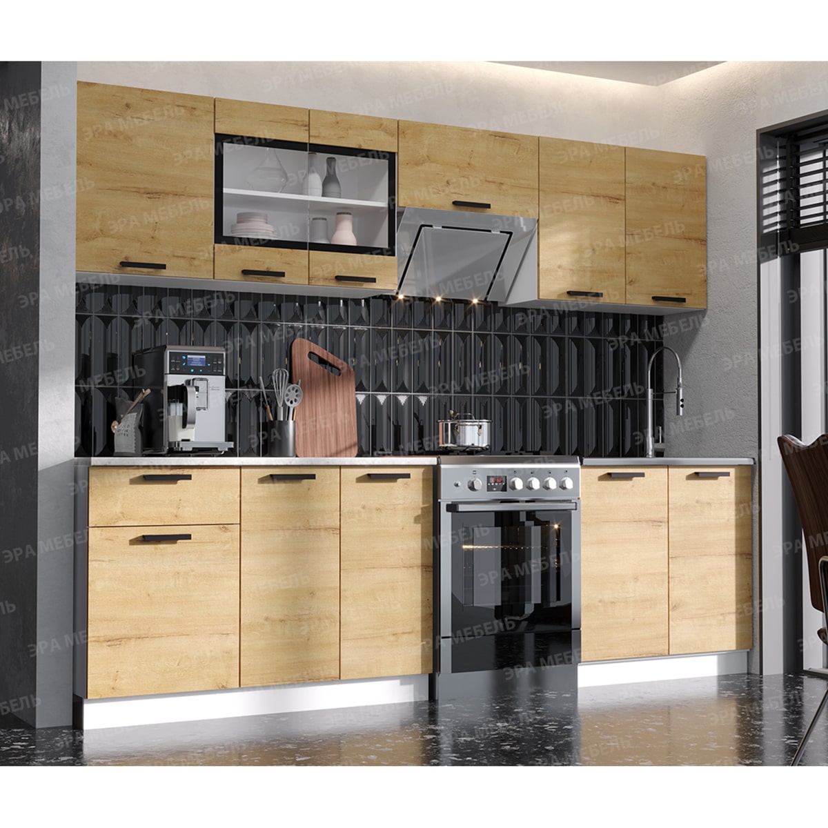 Кухня Хозяюшка 2,6 ЛДСП Дуб Вотан, материал корпуса - ЛДСП, габариты 2600x600x2100 мм.