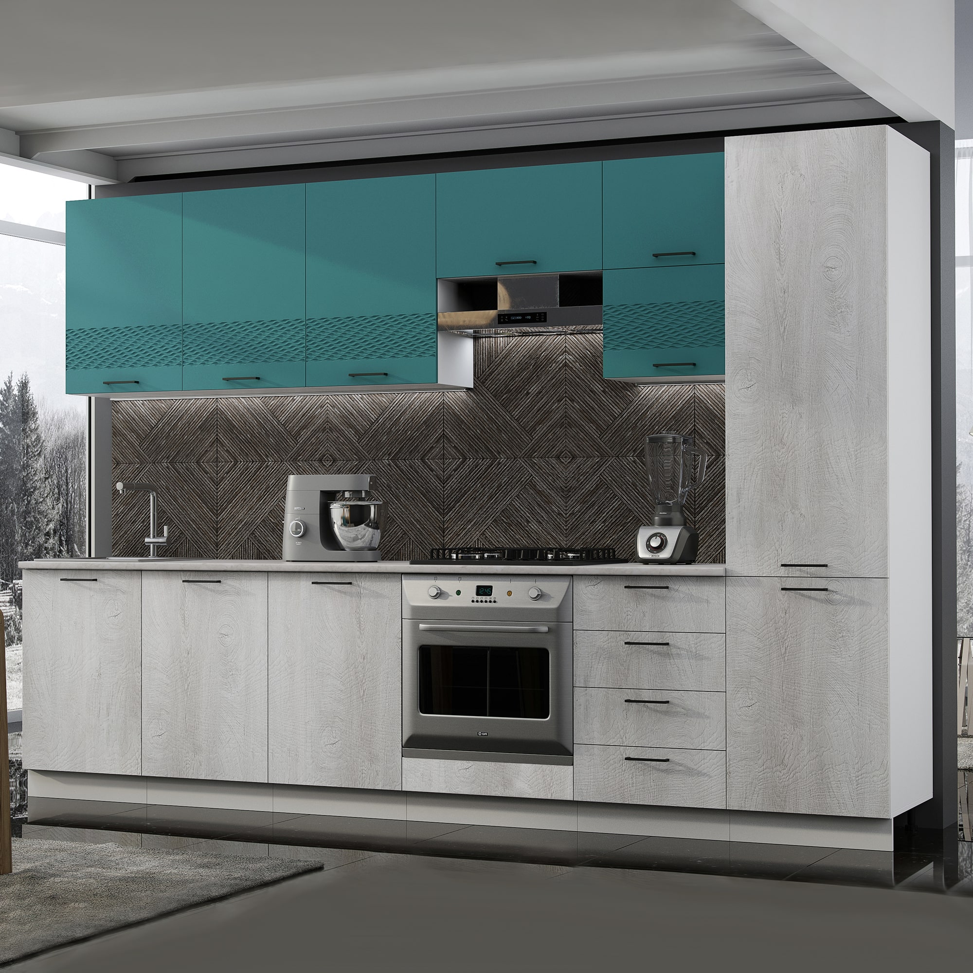 Кухня Лагуна 3100 Морская волна/Дуб седой, материал корпуса - ЛДСП, габариты 3100x600x2140 мм.