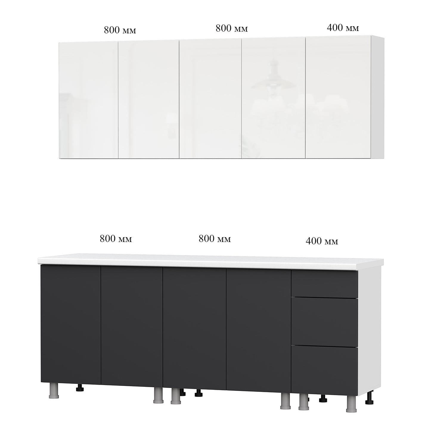 Кухня SV Модерн NEW 2000 Белый глянец Бруно/Графит, материал корпуса - ЛДСП, габариты 2000x506x2170 мм.