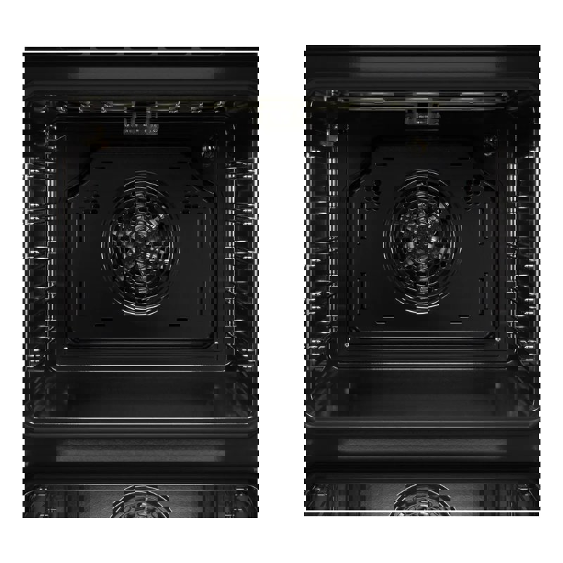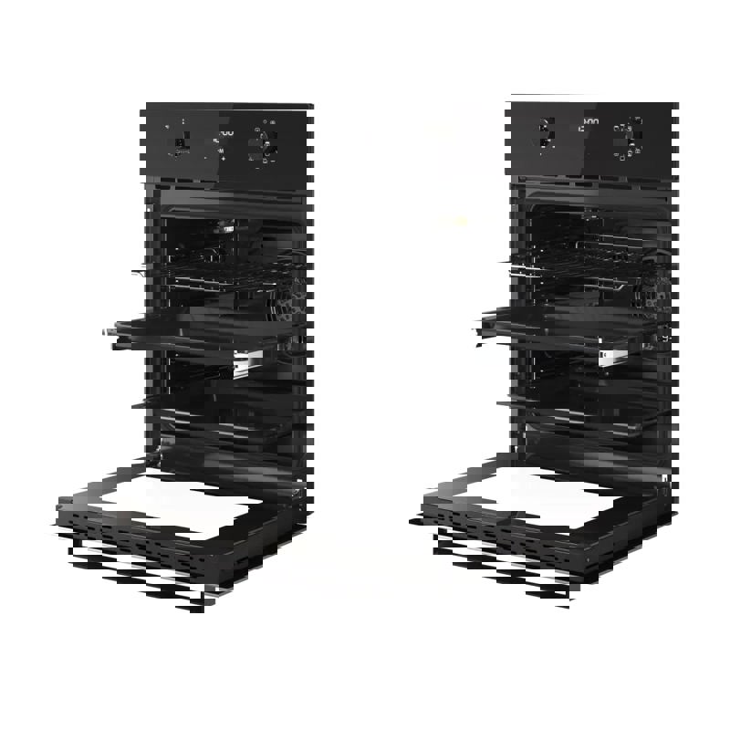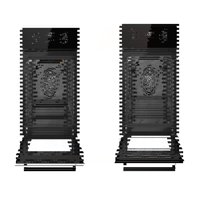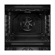 Черный цвет духового шкафа и фурнитуры подчеркивает его современный дизайн и позволяет вписать устройство в любой интерьер. Прибор оснащен съемными хромированными телескопическими направляющими для противней на одном уровне. Освещение духовки обеспечивает отличную видимость в процессе приготовления пищи. Мощность подключения составляет 2.8 кВт, класс энергопотребления A.