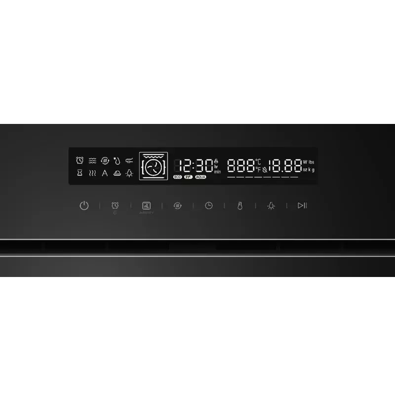 Современный интерфейс с сенсорными кнопками и четким LED-экраном делает настройку духового шкафа простой и интуитивно понятной. Все параметры отображаются на дисплее, а управление требует всего нескольких легких касаний.